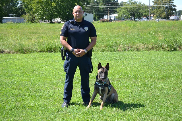 Hanceville Police Department Sgt. Joshua Howell and Tazer (Maggie Darnell for The Cullman Tribune)