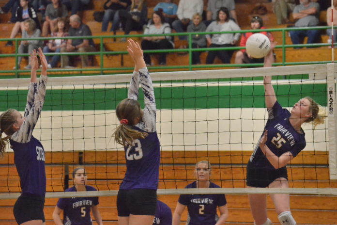 Ball racked up 12 kills to go with two digs in the match and Manasco added 10 kills, four digs and two blocks for Fairview. Means collected 24 assists, three digs and a kill, McGukin finished with four kills and two digs and Yeager posted seven digs in the win.