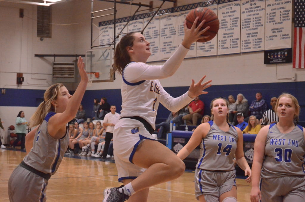 BREMEN, Ala. – After splitting a pair of matchups at Southeastern earlier in the week, Cold Springs returned home Friday night to host an area showdown with West End. The Lady Eagles smothered West End defensively to collect a convincing, 61-15 area win and the Eagles put up 23 points in the third quarter to pull away from the Patriots and win it 65-34. Cold Springs will hit the road next Tuesday night to take on Phillips.
