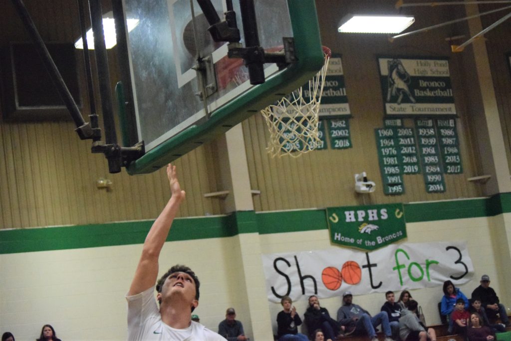 Oneonta put up the first basket of the game on a layup, then Holly Pond’s Kyler Chaney and Jayden Perkins scored the Broncos’ first six points to give them a 6-2 lead. The Redskins hit back-to-back treys to get the lead right back at 8-6 but Holly Pond went on a 14-0 run, with Chaney scoring 10 of those points, and Levi Boatright and Jordan Allbright each added a basket during the run, to push their lead to double-digits at 20-8 and wound up taking a 21-12 lead into the second quarter.