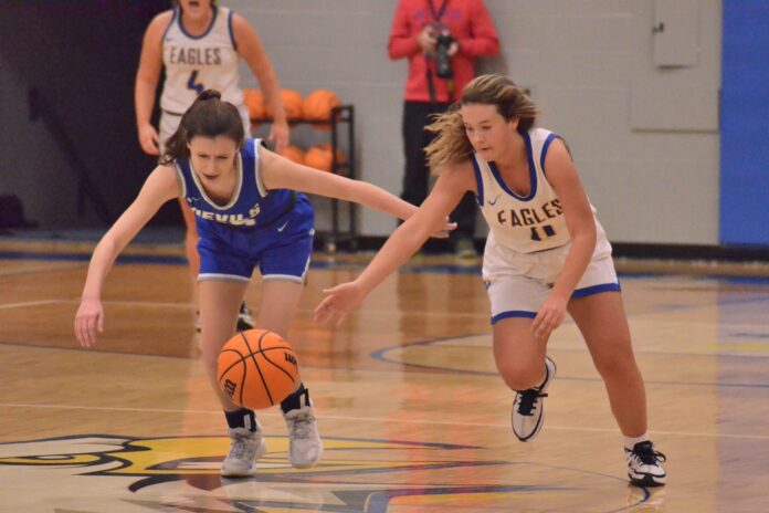 Cold Springs got the game started with a steal from Toni West that turned into a three-pointer for Lacey Rice and made it 3-0. West knocked down a jumper on the next possession to make it 5-0 but things slowed down a bit on the offensive end after that. A floater by West put the Lady Eagles in front 8-4 midway through the opening quarter but after a pair of free throws from Rice made it a 10-5 game late in the period, Falkville drilled back to back three-pointers in the final minute of the first to tie the game at 11 going into the second.