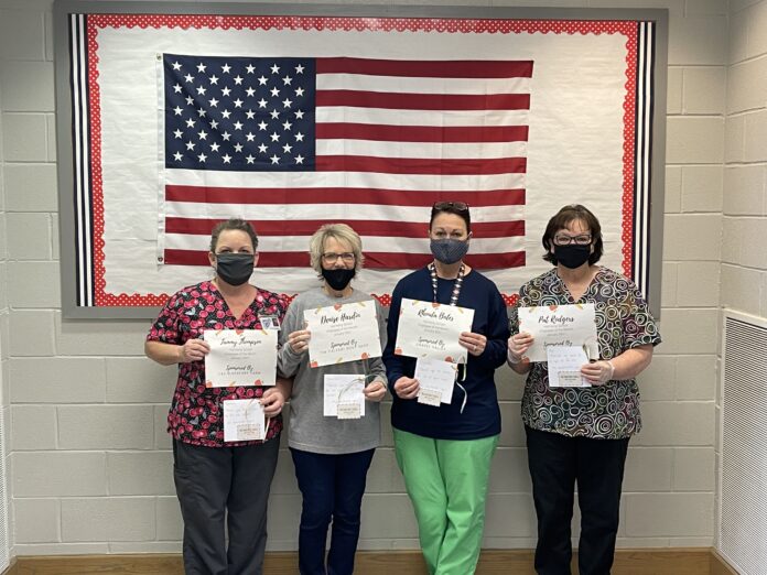 CULLMAN, Ala. – Lunchroom staff members at Harmony School were recently recognized as the school’s Employees of the Month. The four hard–working women go above and beyond, according to Harmony Principal Kevin Sullins. Each day, despite the added difficulties of the pandemic, their pride in their work is quite noticeable.