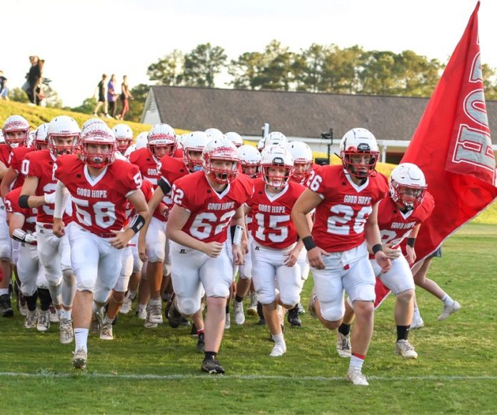Good Hope’s second drive didn’t start out too good and they were faced with a fourth-and-11 from the 45, but Malin kept the drive alive for the Raiders as he found Jager Burns for a 40-yard completion and Kaleb Jones finished the drive off with a five-yard run to give Good Hope a 6-0 lead with a minute left to go in the first half. But the Eagles looked to quickly answer before the half. Miller scampered for 17 yards, then he found Gabe Friedrich for nine yards. Miller then got 16 more on the ground, but Easterwood quickly ended the Eagles’ drive with his second interception of the game as the Raiders went into the half up, 6-0.