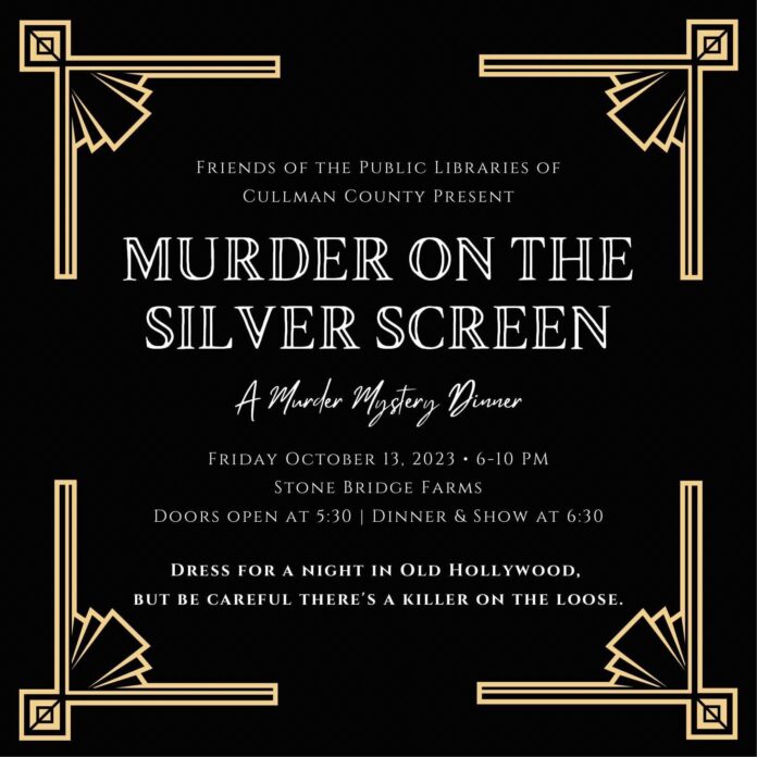 CULLMAN, Ala– Friends of the Public Libraries of Cullman (FPLCC) will be transporting Cullman to old Hollywood, but it’s not as glamorous as it seems. There’s a killer on the loose, and they need your help to find them before it’s too late! FPLCC will be hosting its annual murder mystery dinner fundraiser on Friday, October 13, 2023, at Stone Bridge Farms. Doors open at 5:30 p.m., with dinner and show beginning at 6:30 p.m..
