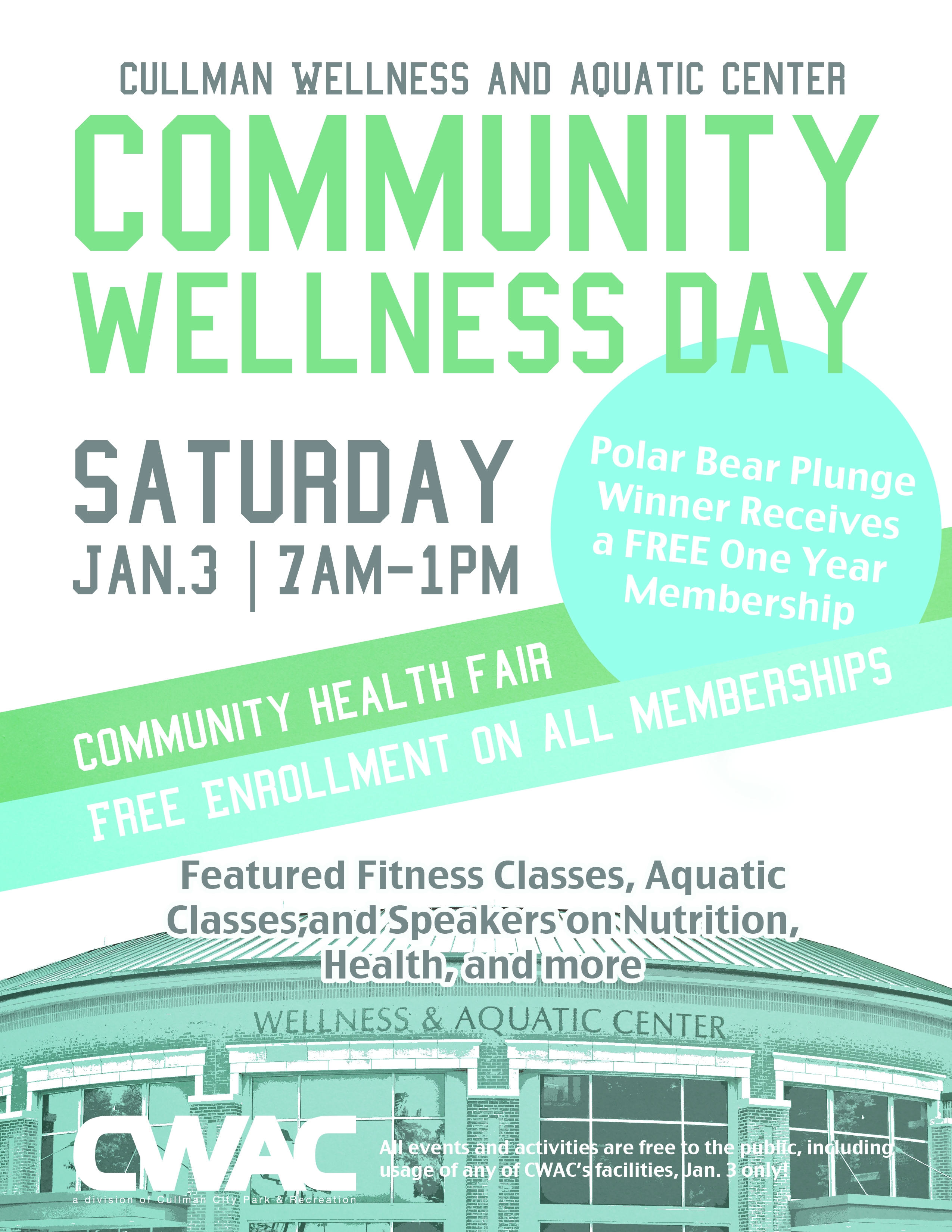 The Community Wellness Day will be held at the Wellness and Aquatic Center from 7 a.m. – 1 p.m. on Saturday, January 3 with the intent of educating, motivating, and assisting the community in attaining the number one New Year’s Resolution across the world, which is living a healthier lifestyle in the coming year. The Community Wellness Day will feature speakers on the topics of nutrition, building a workout program, wellness, and other related topics. A health fair will also take place featuring several local businesses and organizations relating to maintaining a healthier lifestyle. Featured fitness and aquatic classes will also take place during the day including Zumba, spin, aerobics, water aerobics, and more. In addition, the center will also be offering free enrollment fee on any memberships to the Wellness and Aquatic Center, and will be giving away a one year free membership in the Polar Bear Plunge that will take place on January 3 along with the Wellness Day. All activities are free to attend in an effort to truly make a lasting impact of creating a stronger, healthier community.