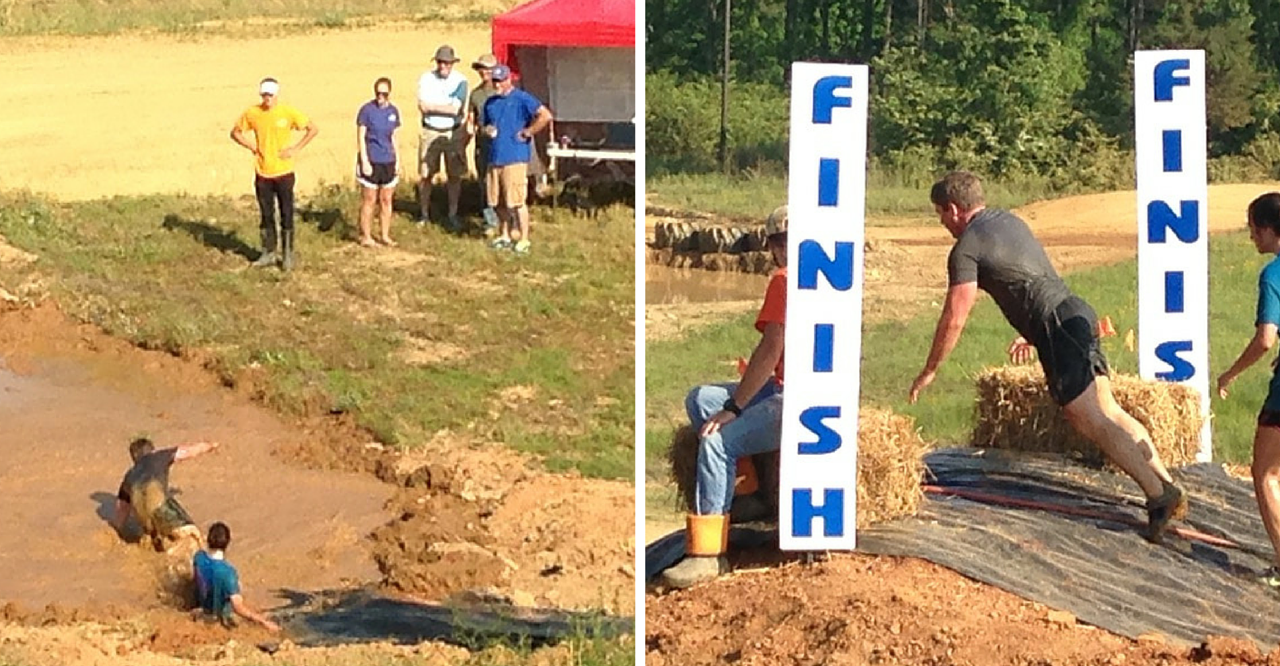 Contestants ran, waded, walked, climbed, and everything in-between through mud to get to the finish line ending in a giant slide which spat the contestant into even more mud.