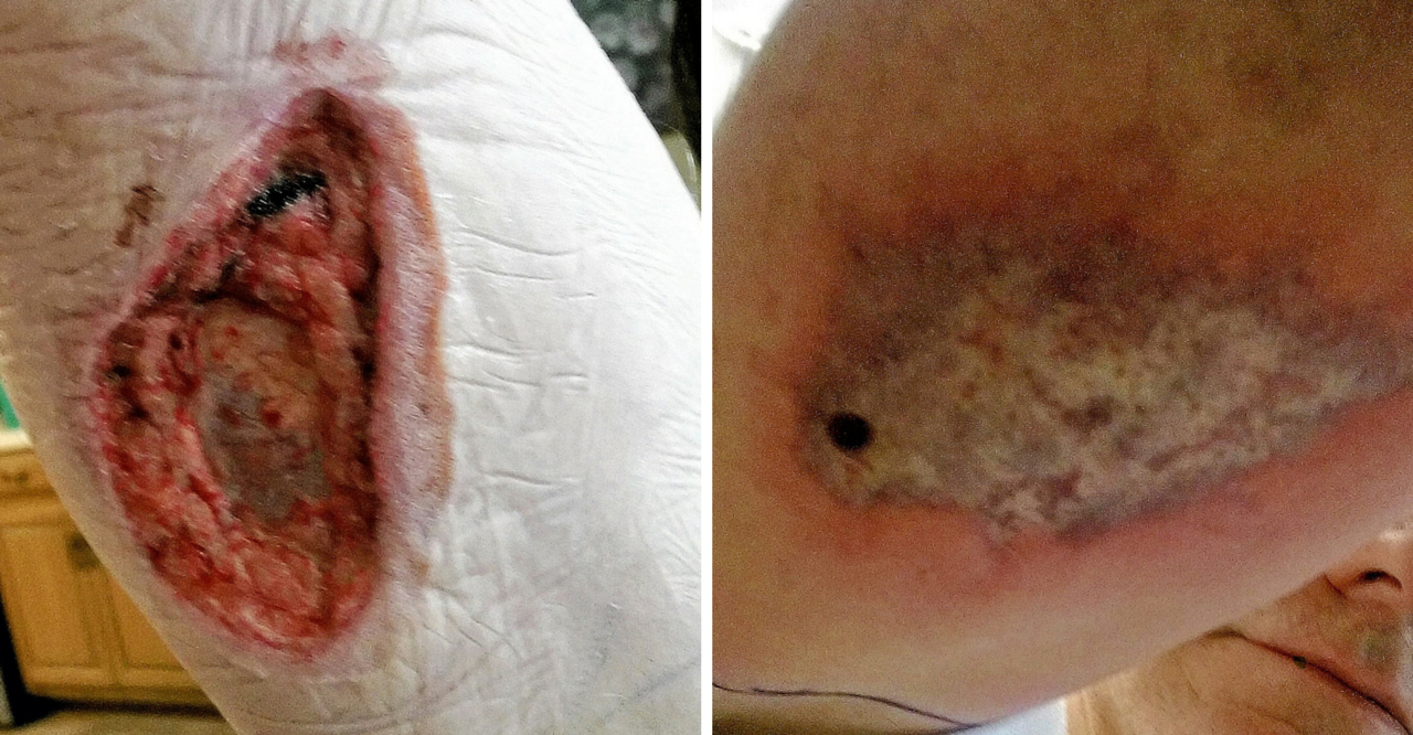 After going to Urgent Care, Brock was sent to a surgeon. Brock had to wear a wound V.A.C., which is a small, portable device that has a tube keeping constant pressure on the wound.