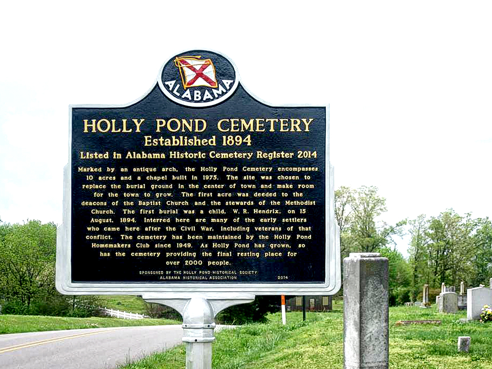 HOLLY POND – The Holly Pond Cemetery is located one-half mile northwest of Holly Pond High School on County Road 1669 in the town of Holly Pond. On April 19, 2015 the Holly Pond Historical Society unveiled this beautiful Holly Pond Cemetery historical marker near the main entrance.