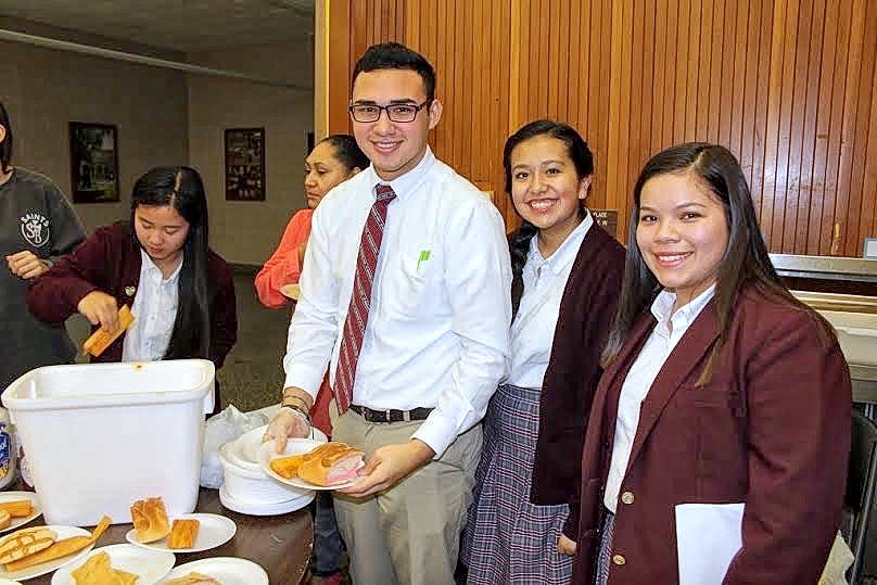 Following the rosary, students walked over to the dining hall where the Spanish III and IV classes displayed decorated artwork and banners in a Mexican theme. Danza, a traditional form of Mexican dance, was performed by students, friends and family.