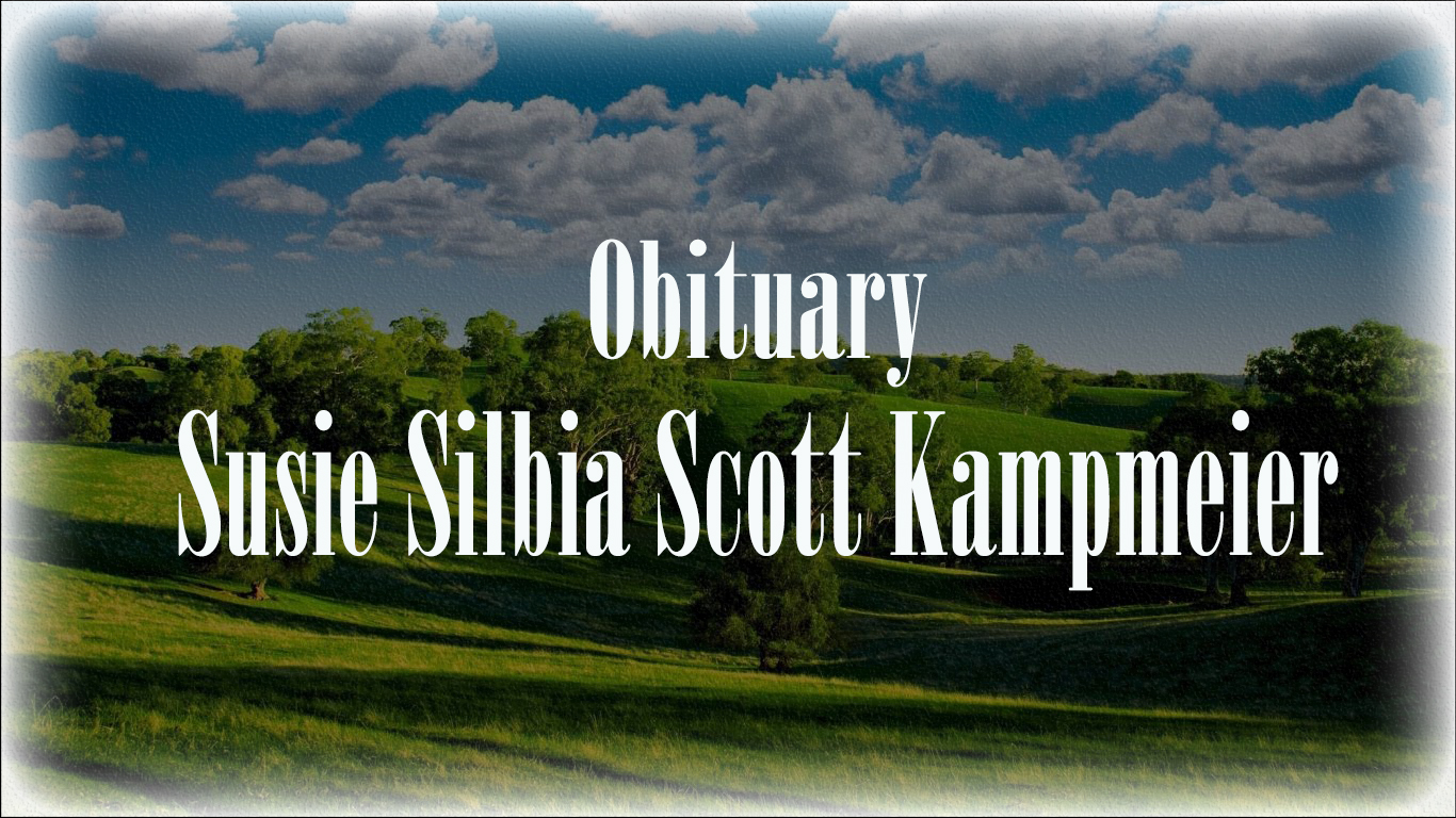 Mrs. Kampmeier was preceded in death by her loving husband Roland Kampmeier, her parents Columbus Jarrett Scott and Ana Mabrey Scott, 5 brothers, Clinton, Cordis, Carmel, Parks, and Macon Scott and dear stepdaughter Ann Qualman.