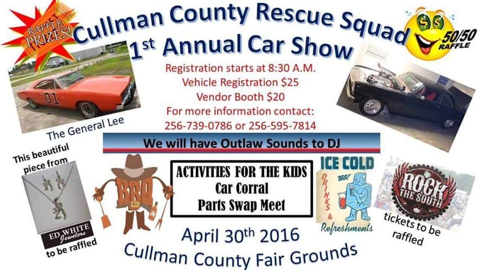 CULLMAN – On Saturday, April 30, the Cullman County Rescue Squad will hold a car show at the Cullman County Fairgrounds. The squad hopes to make the show an annual event