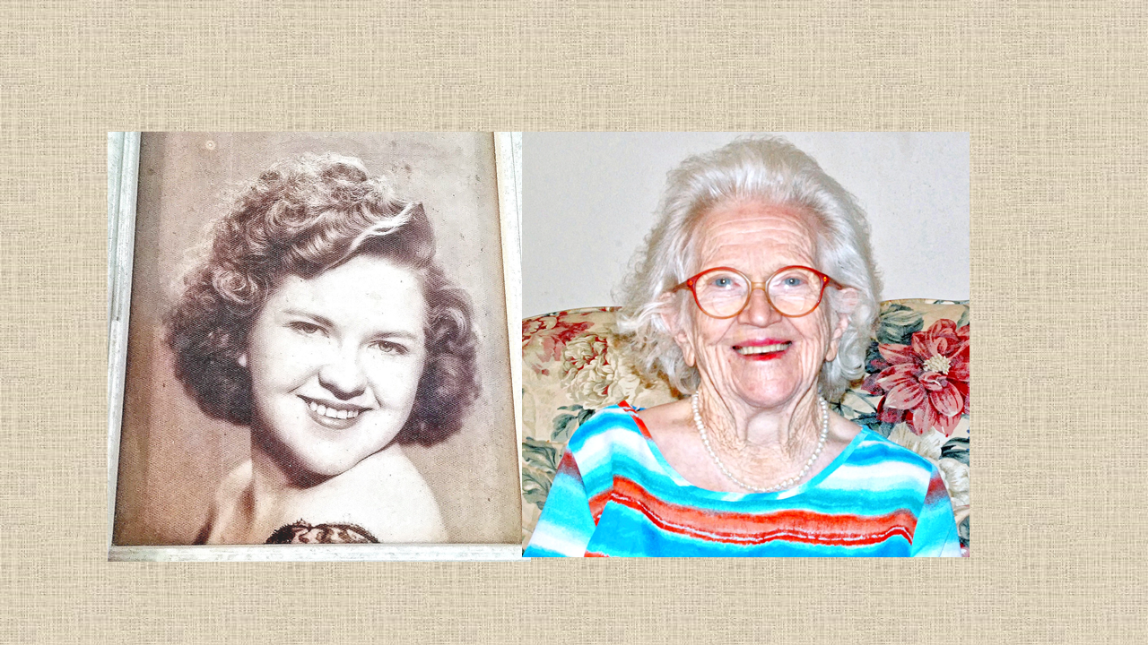 Imogene Lawrence then and now – she still loves to talk about news in the North Vinemont community.