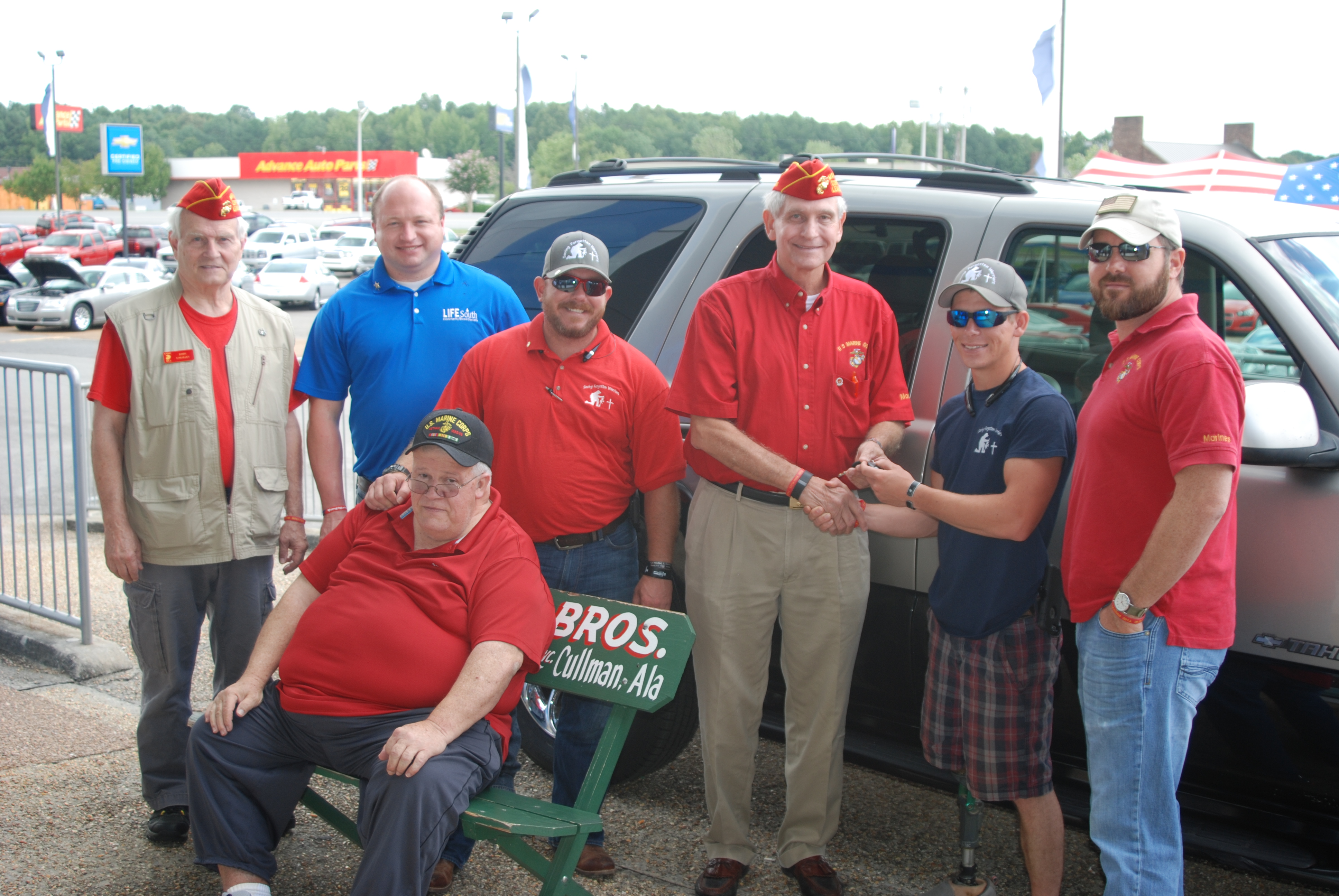 CULLMAN – On Thursday, members of Saving Forgotten Warriors (SFW), The Marine Corps League and Mitch Smith Chevrolet presented a gently used 2001 Chevrolet Tahoe to a local disabled Marine veteran, Trent Winstead. It was a day where lots of planning and hard work finally paid off. The Tahoe will change Trent’s life for the better in so many ways, but best of all it will offer him the freedom and the ability to go wherever he needs to go. He plans to use it to continue his education and help other veterans along with the SFW.