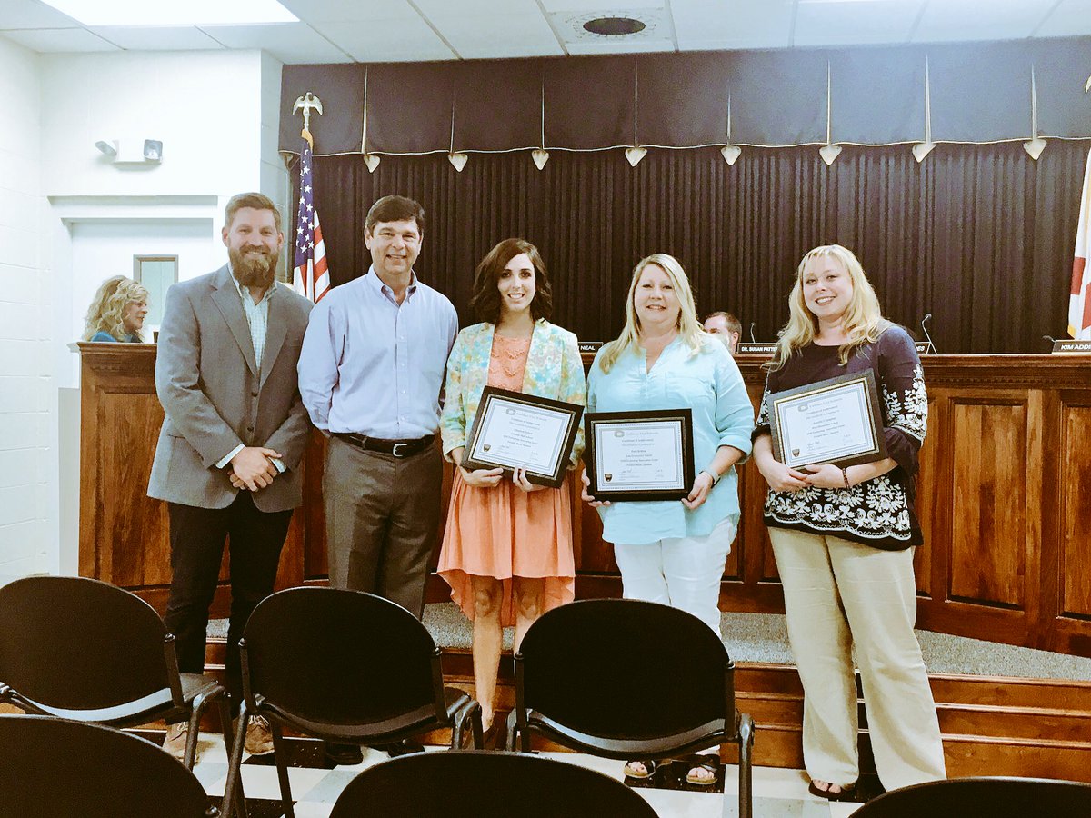 Recognitions were the highlight of the meeting with Premier Bank awarding Technology Innovation Grants to four area teachers. Recipients were Savannah Wood of East Elementary School for $1,000, Jennifer Crumpton of West Elementary for $500, Patti Britton of East Elementary and Elizabeth Pylant of Cullman High School for $250.