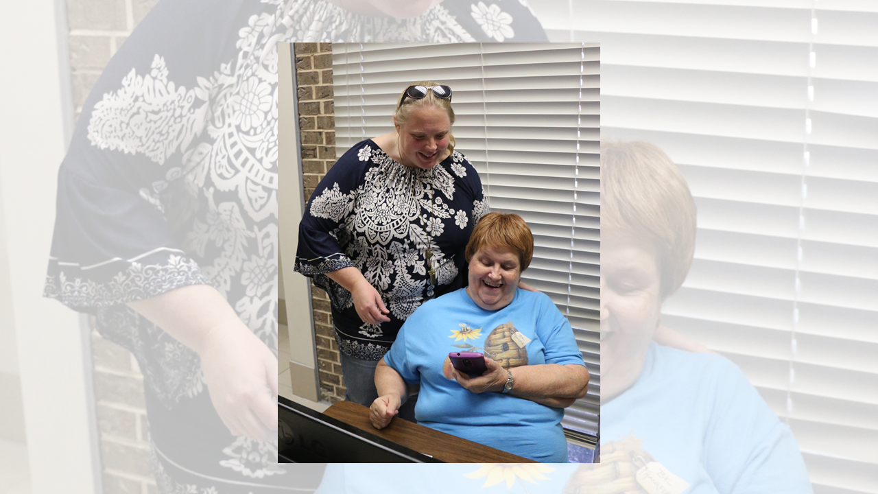 Photo: WaLLi member Gloria Lawler learns how to use her smartphone with the help of instructor Jamie Fallin.
