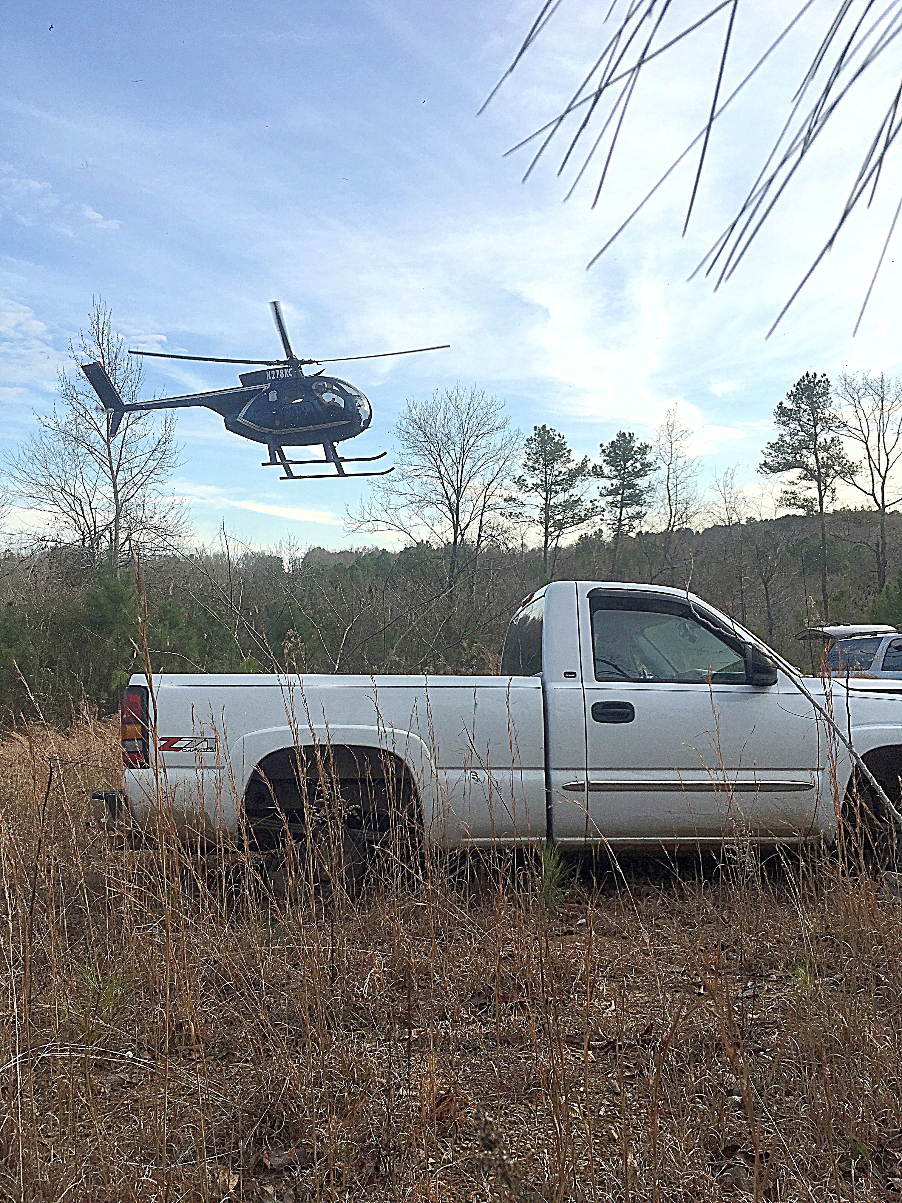The vehicle was reported stolen on Dec. 19 from a business in the city of Cullman. Due to the rural area and terrain, the CPD decided to use the new helicopter in the search. Within minutes of take-off, investigators located the vehicle abandoned on a logging road near the Mulberry River close to the Cullman-Blount County line.