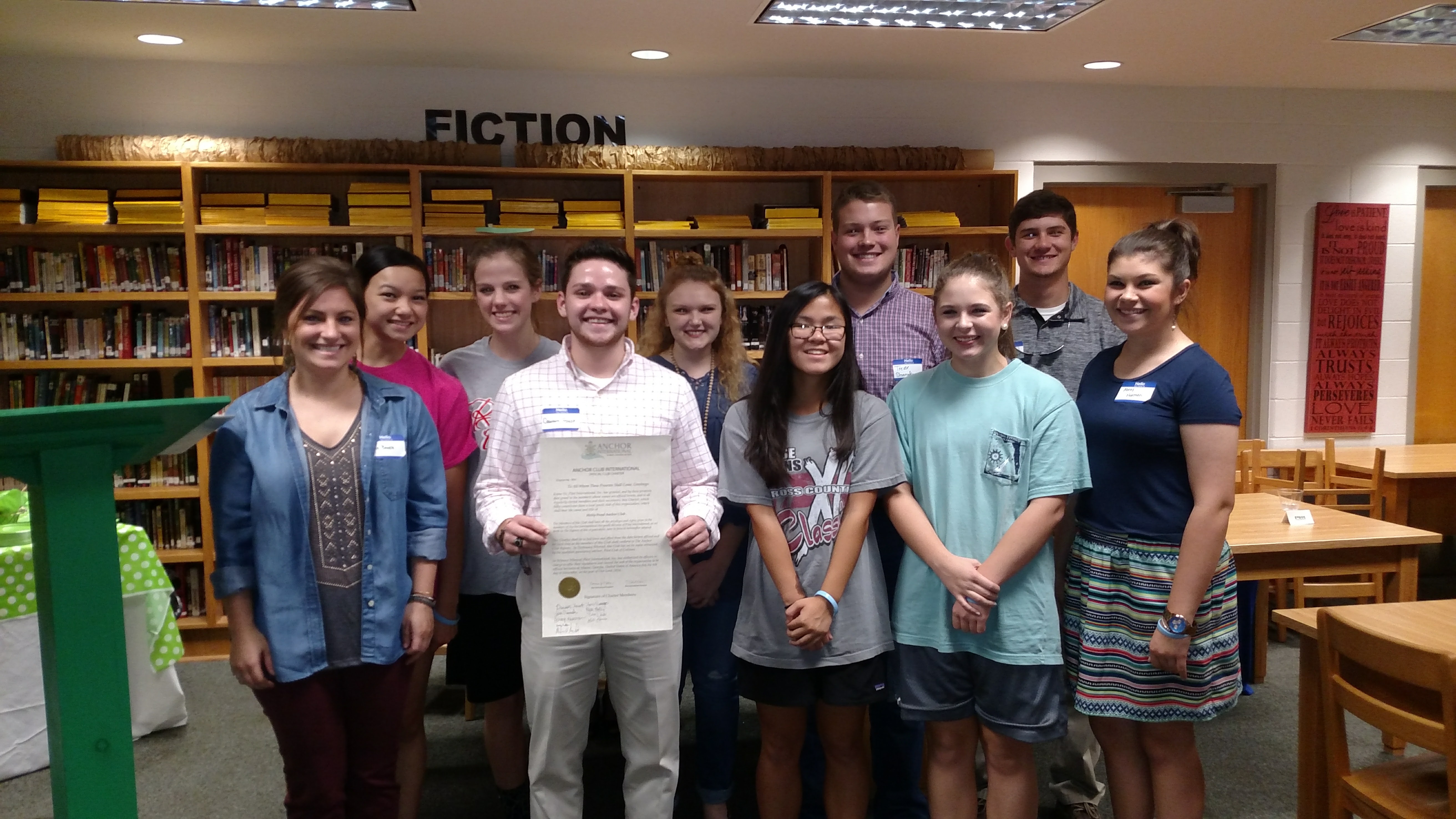 (Pictured at top) Left to right: Karlie Baker, Anchor Club advisor; Lili Harris, media reporter; Tess Duke, Dawson Foust, president; Tori Partridge, secretary, Korey Butler, Trevor Shoemaker, vice president, Kara Hollis, Michael Lambert and Abrey Norman.