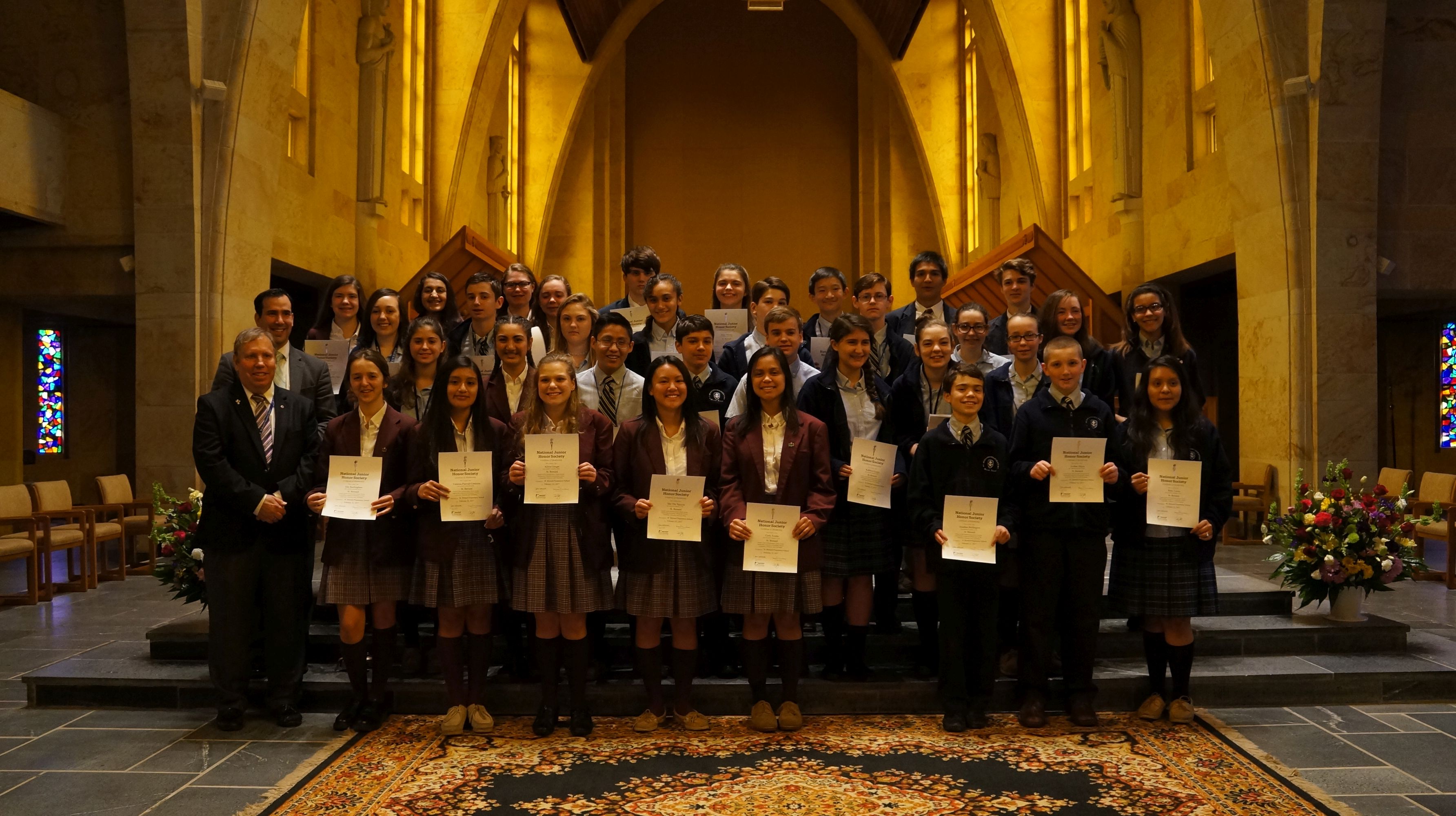 CULLMAN – Saint Bernard Preparatory School held its first induction ceremony of the National Junior Honor Society on Feb. 22, 2017. The ceremony was conducted by Cade Broadly, president of the SBP National Honor Society.