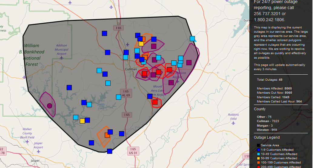 The Cullman Tribune will keep you updated on the outages. To view current outages, visit: http://outages.cullmanec.com.