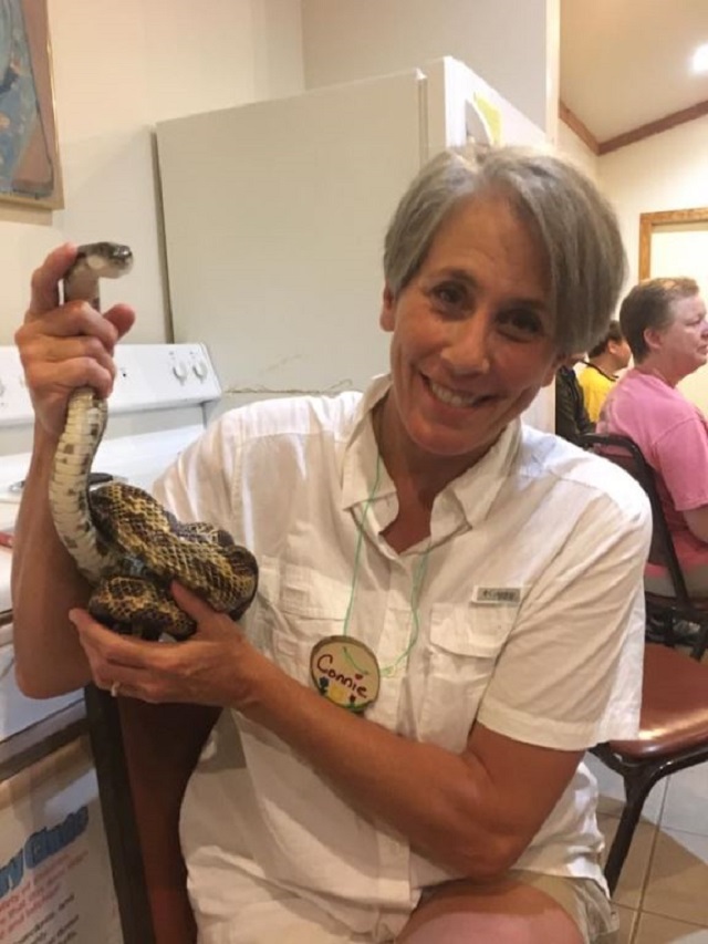 Wallace State biology instructor Connie Briehn holds a snake during her time on the Mountains to Gulf: Helping Teachers Make Connections expedition, hosted by the Montgomery-based Legacy, Partners in Environmental Education.