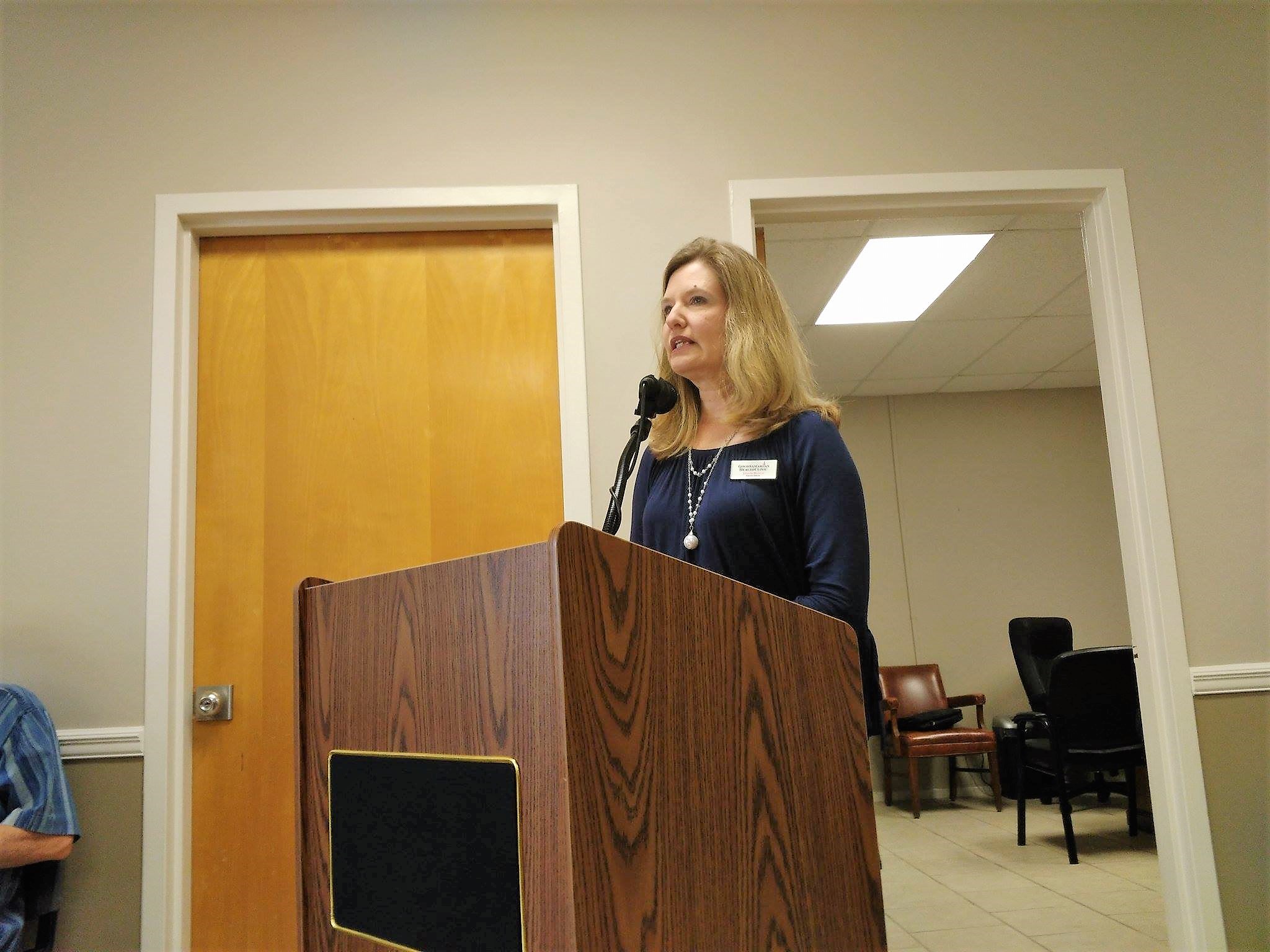 Jolanda Hutson, of the Good Samaritan Health Clinic, addresses the Cullman County Commission on Tuesday, Aug. 8. / Andrew Cryer