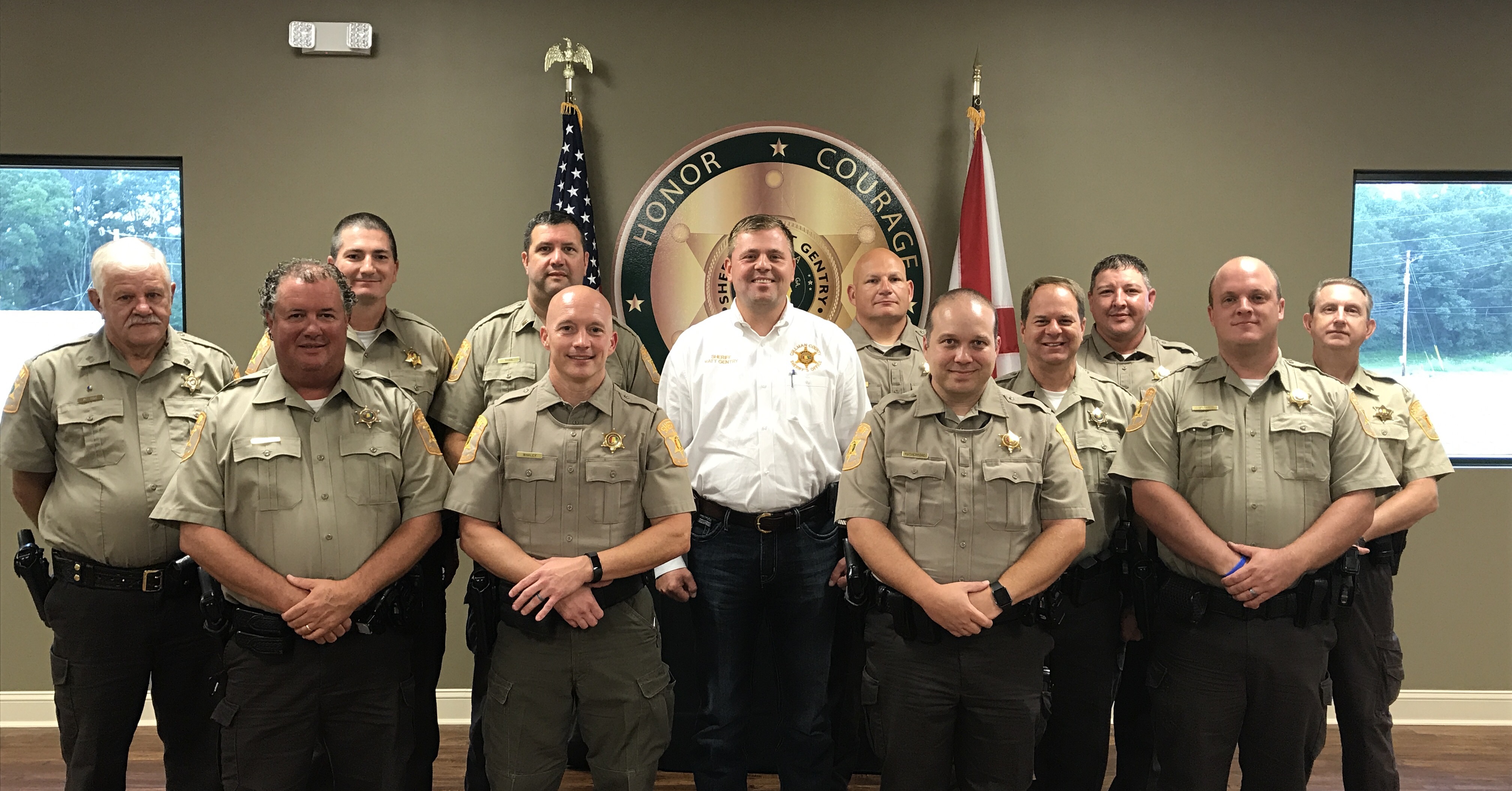 2017-2018 Cullman County School Resource Officers: Front row, l-r: Deputy Shane Chambers, Deputy Chad Whaley, Deputy Matthew Rutherford, Deputy Boyd Posey; Back row, l-r: Sgt. Arvel Allison, Deputy Jeff Lawson, Lt. Erik Ryan, Sheriff Matt Gentry, Deputy Kevin Folds, Deputy Jim Butts, Deputy Eric Robertson, Sgt. Randall Chambers