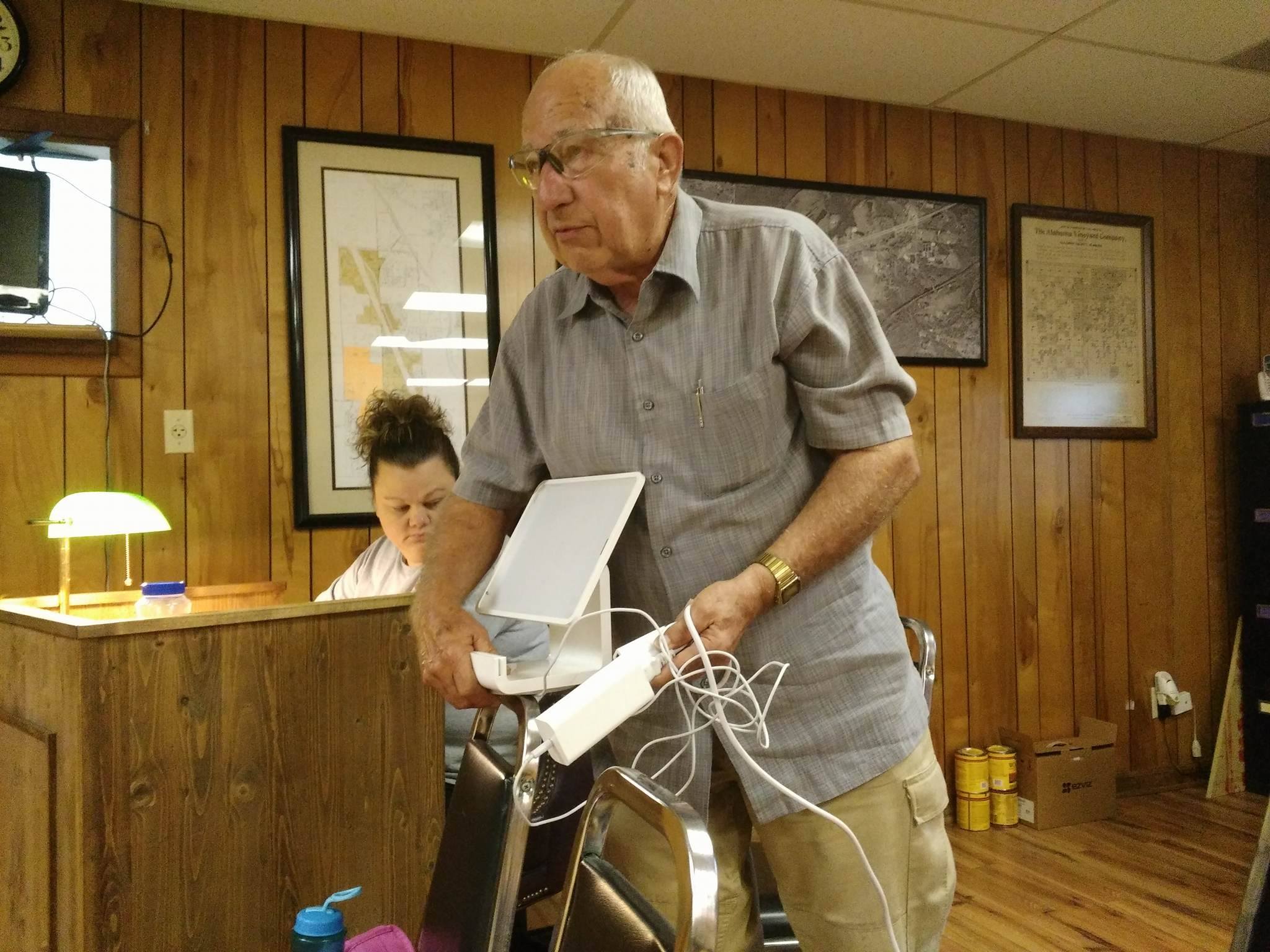 Vinemont Mayor Radginal Dodson shows council members the Square Stand. / Andrew Cryer
