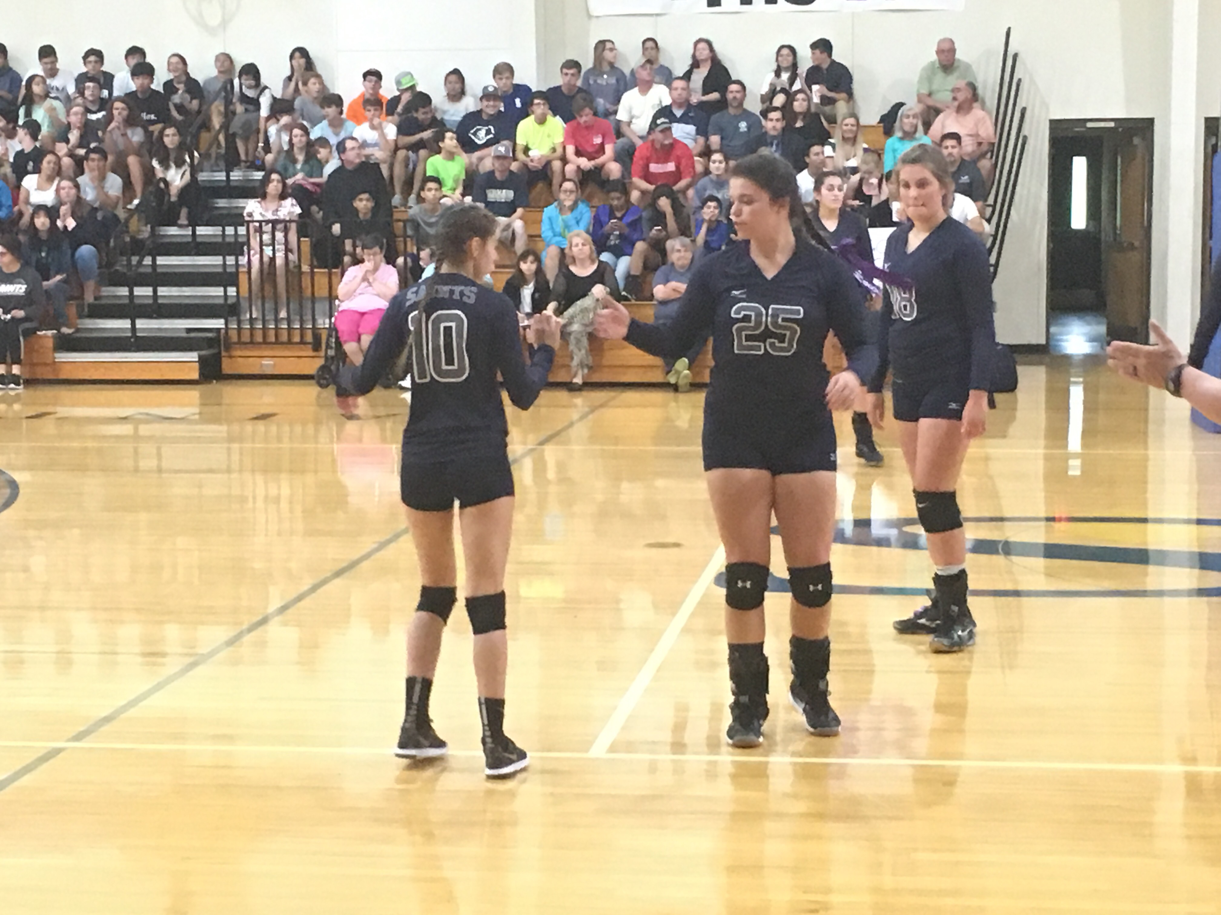 Defensively, the Lady Saints got a good performance from Olivia Brown who came up with a big block in both the first and third games of the match. Emma Tafazoli was also involved in the scoring, with late kills in both the first and third matches.