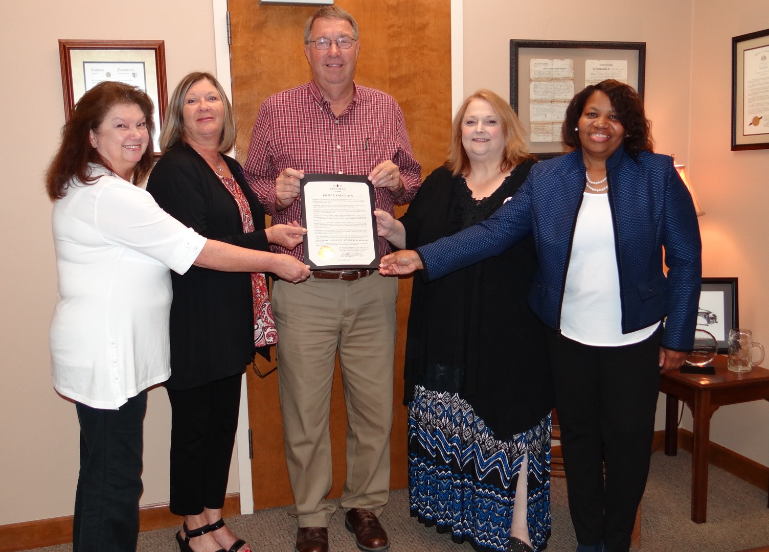 On hand to accept the official proclamation at the mayor’s office were Theresa Mann, Marie Lindsey, Carol Horstman and Regina Grant of Victim Services of Cullman.
