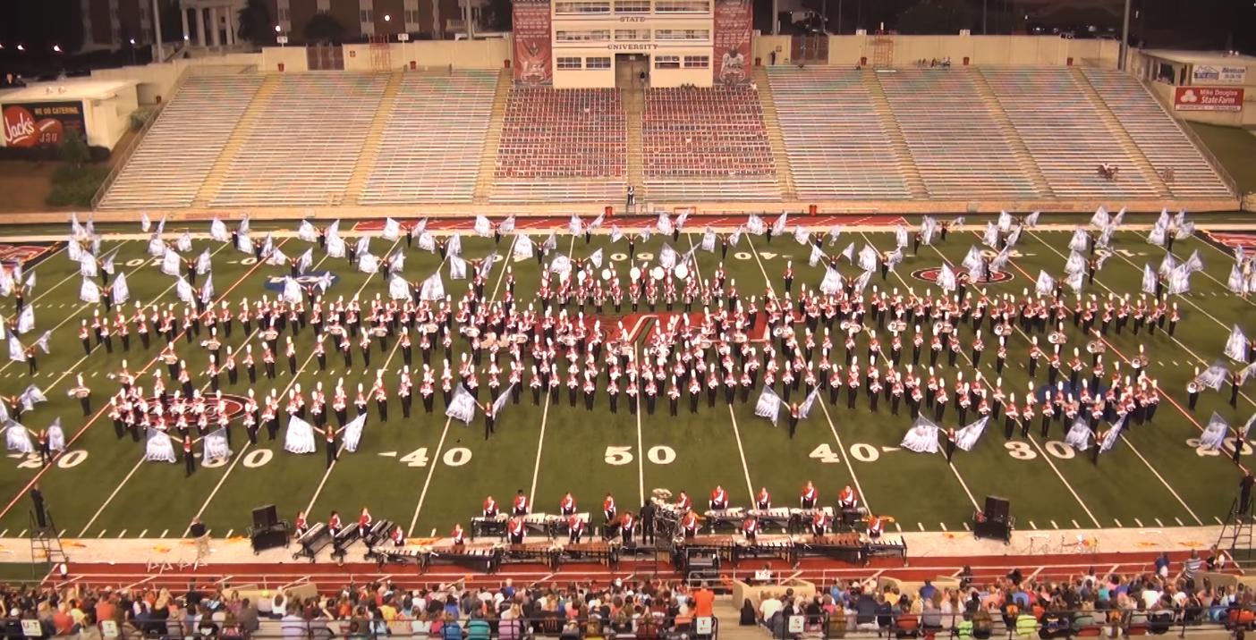 The Jacksonville State University Marching Southerners at September’s Calhoun County Band Exhibition / CollegeMarching.com