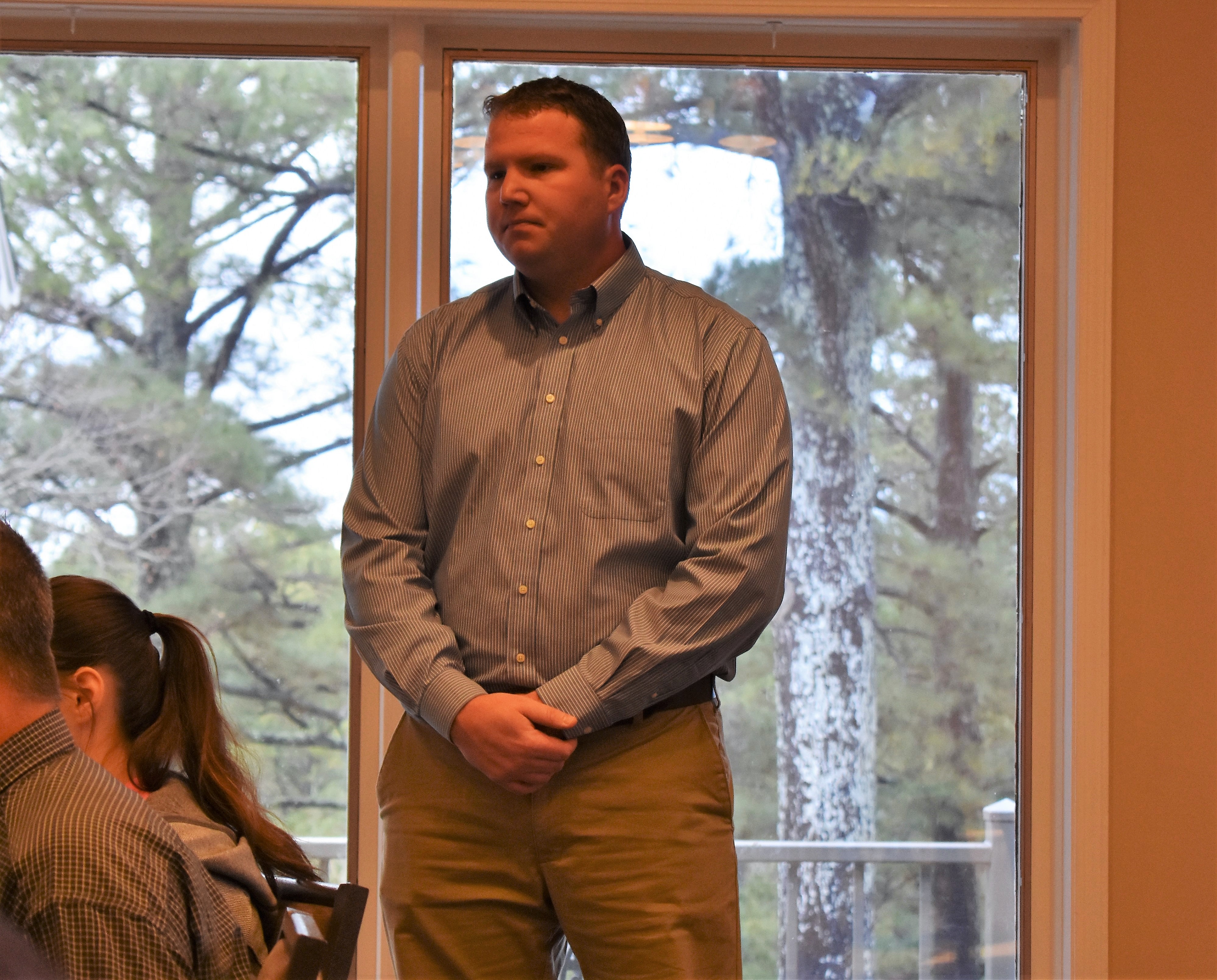 Rep. Corey Harbison, R-Good Hope explains the proposed fuel tax legislation to county commissioners and mayors at Wednesday's meeting of the Cullman County Mayors and Commissioners Association. / W.C. Mann