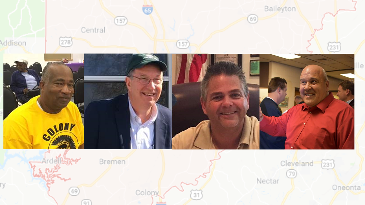 Pictured left to right: Colony Mayor Donnis Leeth, Cullman Mayor Woody Jacobs, Hanceville Mayor Kenneth Nail and Cullman County Commissioner Garry Marchman / Tribune file photos