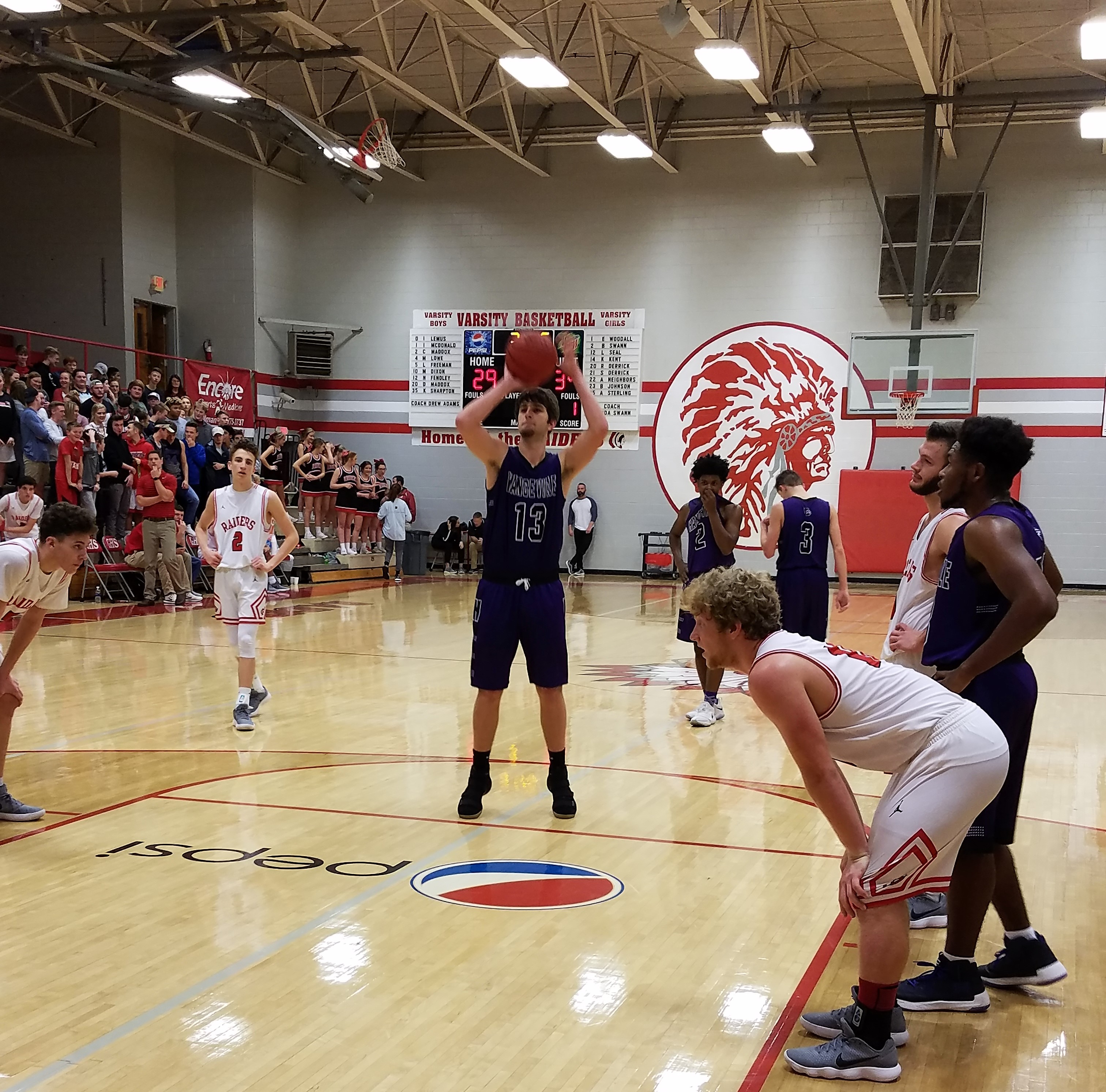 The last game of the night had the varsity boys in a battle to the end, with the Raiders coming from behind to win it, 59-54.