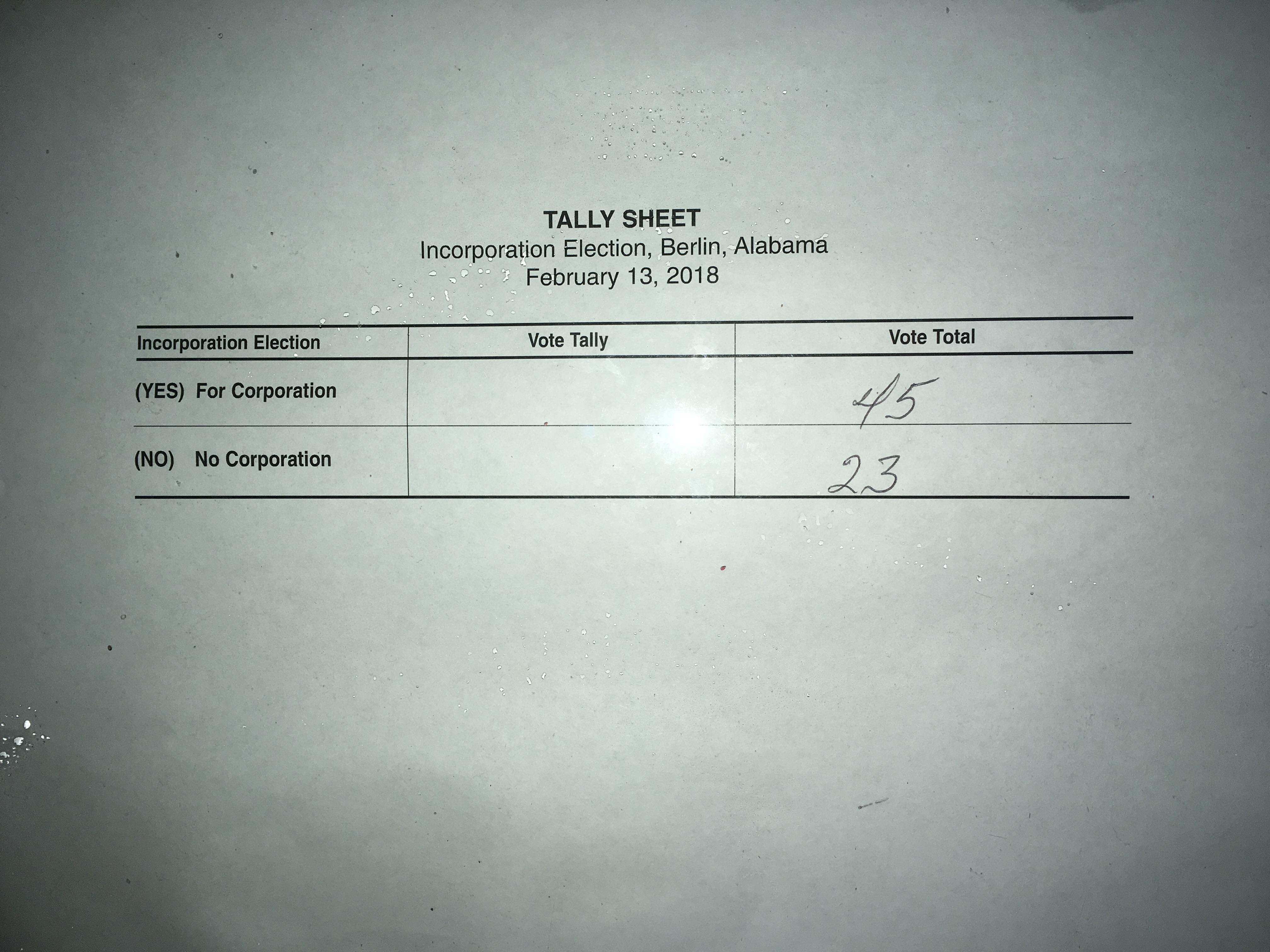 NewsLocalLocal Government It’s a yes: Berlin residents vote to incorporate By: W.C. Mann February 14, 2018 0 1660 Share FacebookTwitterPinterest BERLIN – Two years of planning came to fruition today, with the residents of Berlin voting to incorporate their community to become the town of Berlin. The incorporation passed, 45-23. Copyright 2018 Humble Roots, LLC. All Rights Reserved.
