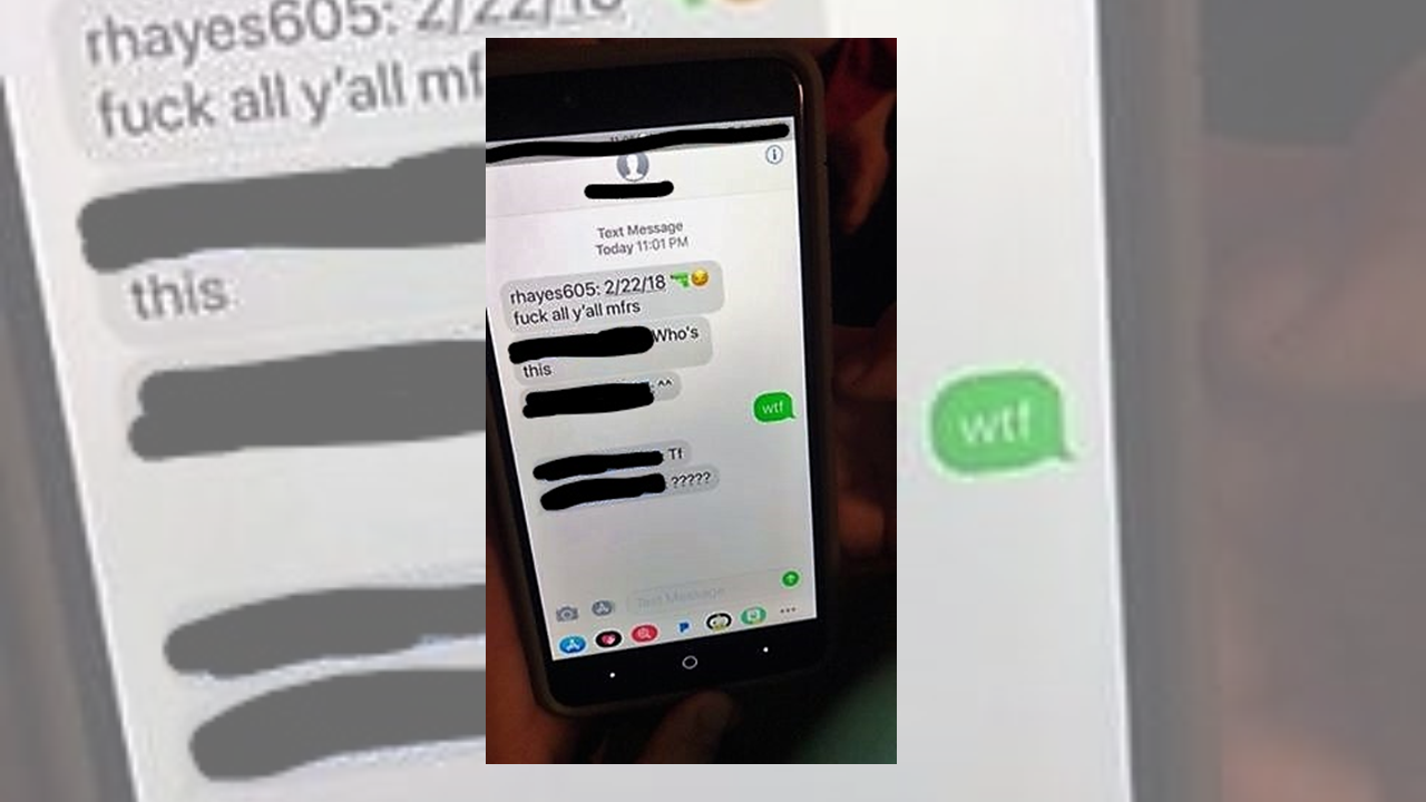 The Tribune obtained a photo of the text message Wilson allegedly sent under the fake user name "rhayes605." It read, "fuck all y'all mfrs" and contained a gun emoji. The text was sent to students at Vinemont High School. The text was sent using the app TextNow.