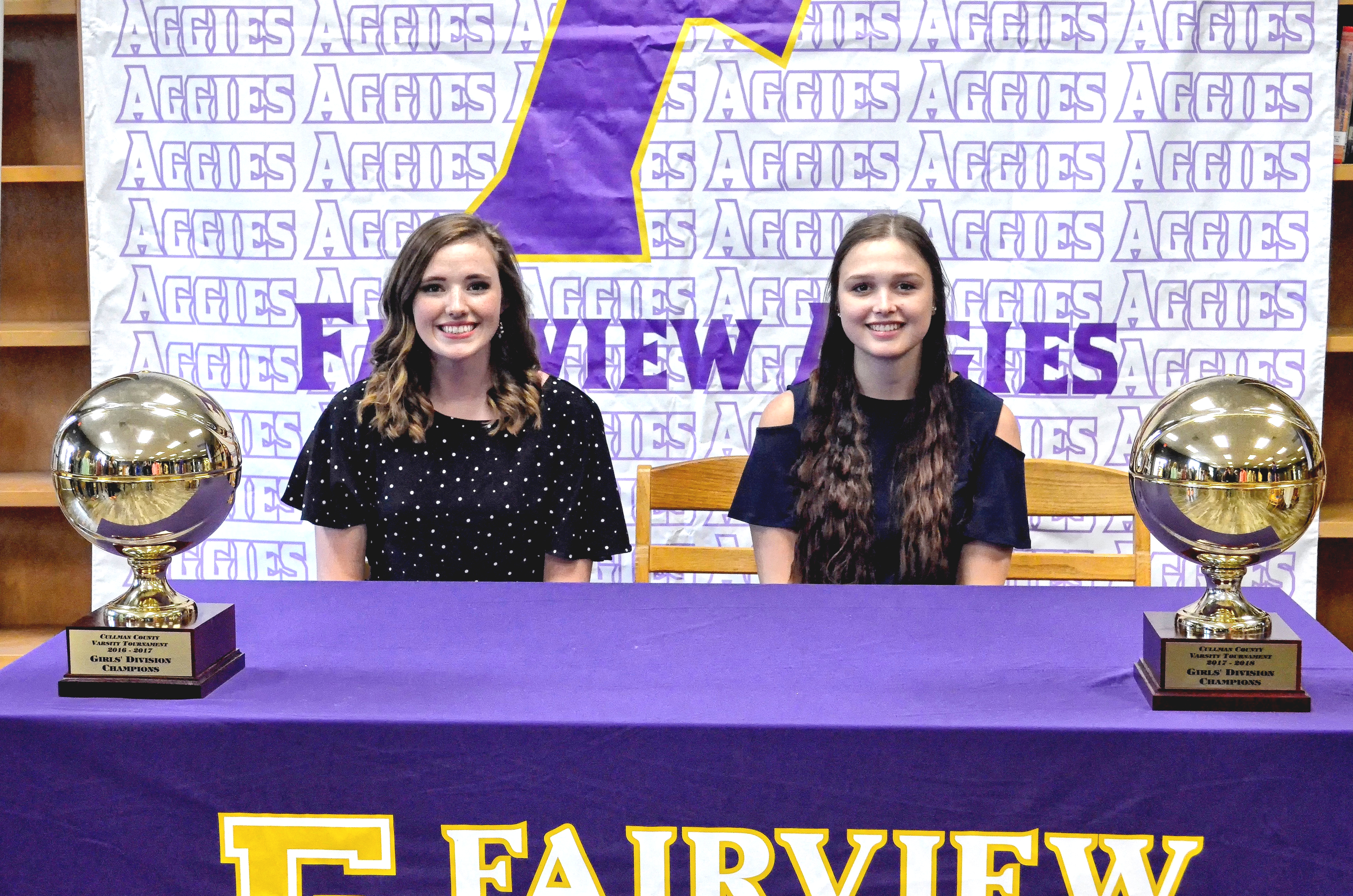 FAIRVIEW – Two Fairview High School Lady Aggies on Monday morning signed athletic to continue their playing careers at the collegiate level. The FHS library was full of friends, family and food for the occasion. Lady Aggies basketball standouts Abbi Taylor and Valentina (Ina) Klocker signed to play for Snead State and Faulkner University, respectively. Taylor and Klocker helped lead Fairview to an Area 12 title and the Northwest Regional in 2017-18 season.