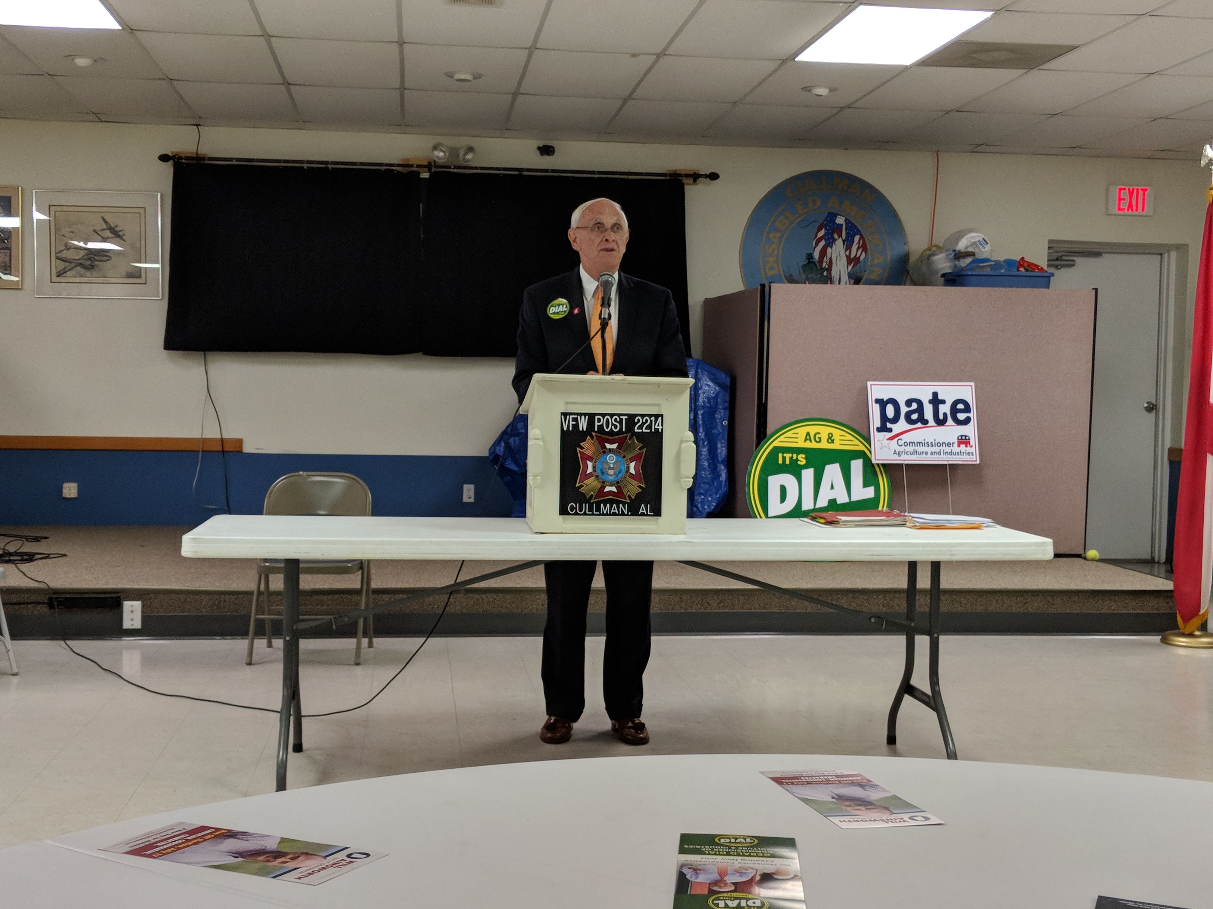 In his remarks, Dial, who serves District 13 in the Alabama Senate, said that despite being a $70 billion industry and one of the largest industries in Alabama, agriculture's importance is often overlooked and taken for granted. The offices involving agriculture don't just relate to growing food, but also ensuring product quality, proper consumer portions, and research of crop diseases. He also stated that Alabama can promote agriculture without having to put money into the industry by increasing irrigation and exports. Alabama has 100,000 acres of irrigation, compared to Georgia's 500,000 acres, and Dial said he aims to increase that amount by 100,000 acres per year until Alabama catches up to Georgia.
