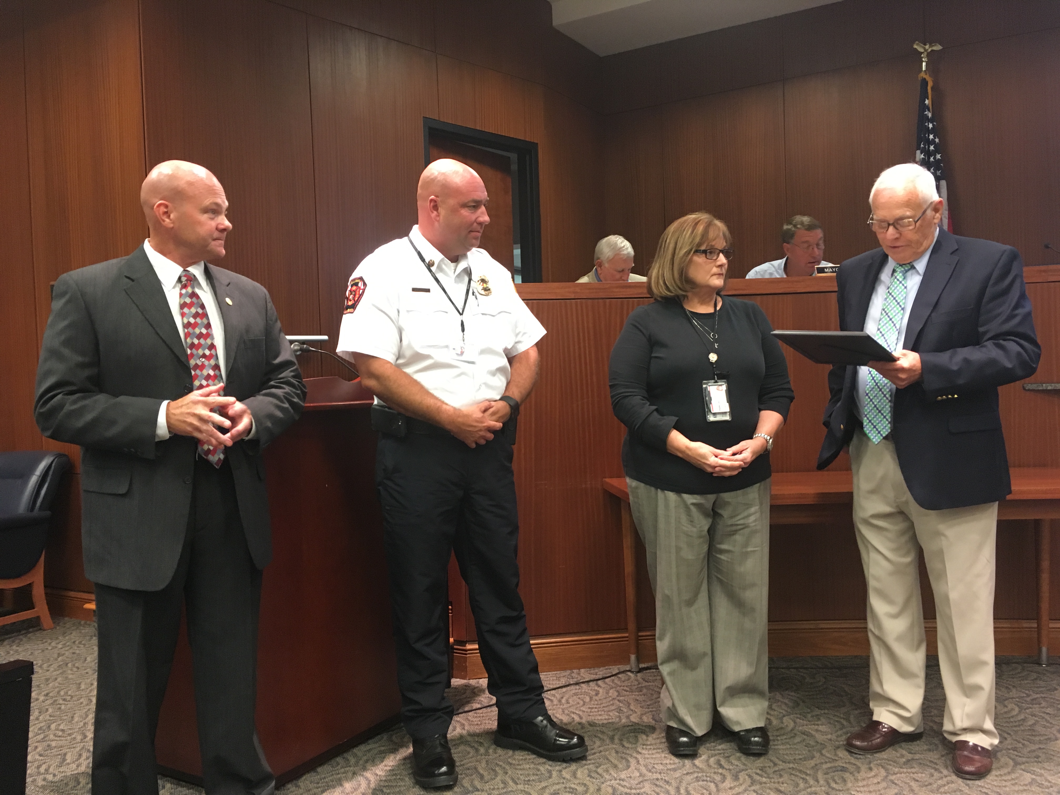 Chief Montgomery said, “Phyllis not only is a friend of mine, she is an integral part of this community. She pours her life blood into EMA. She is down there countless hours that you folks don’t know about. And it’s not just emergencies; for instance, Rock the South: if it was not for her, I’m not sure we could have pulled it off. So, she is a super cog in this community.”