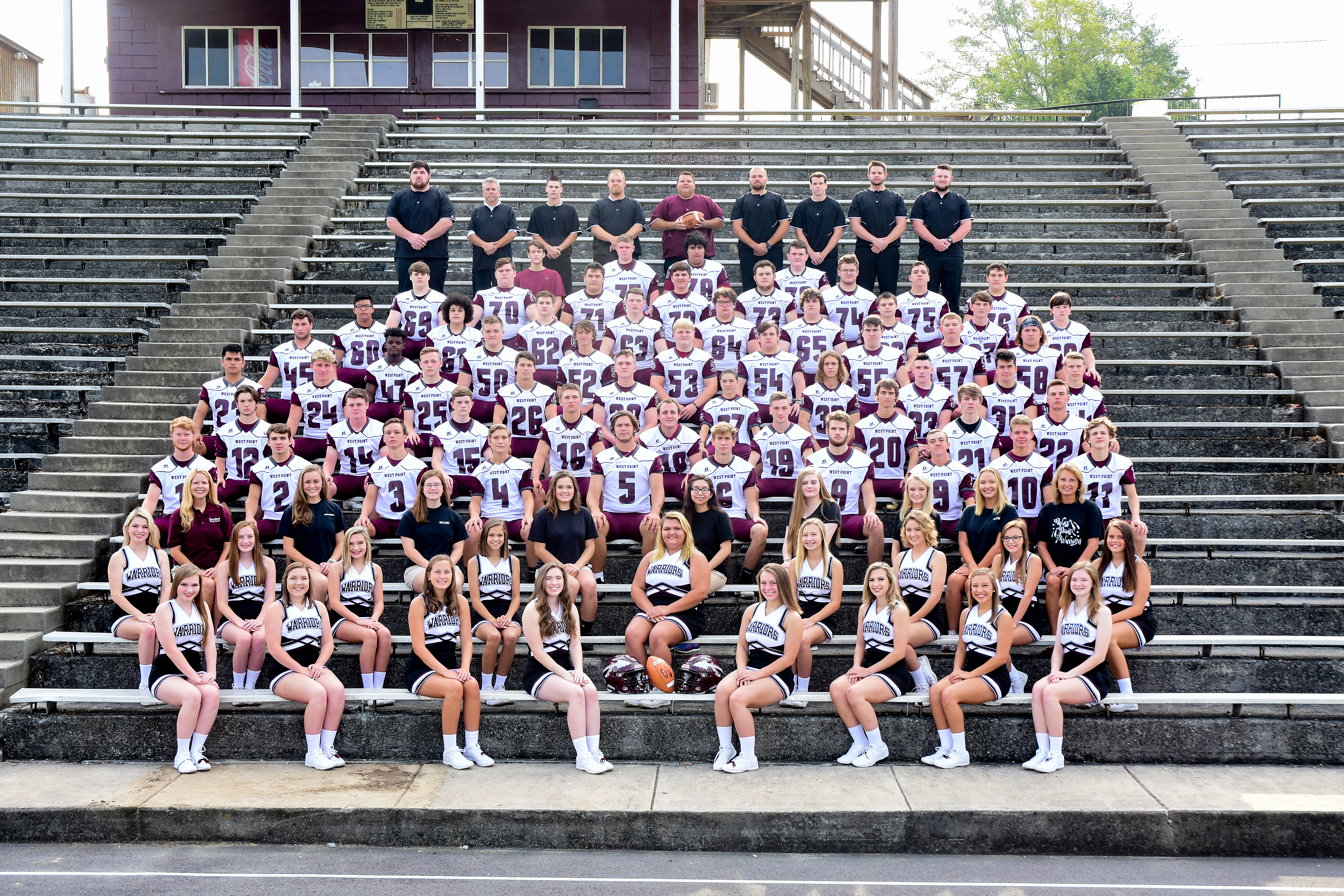2018 West Point Warrior football team, coaches and cheerleaders (RiverCat Photography)