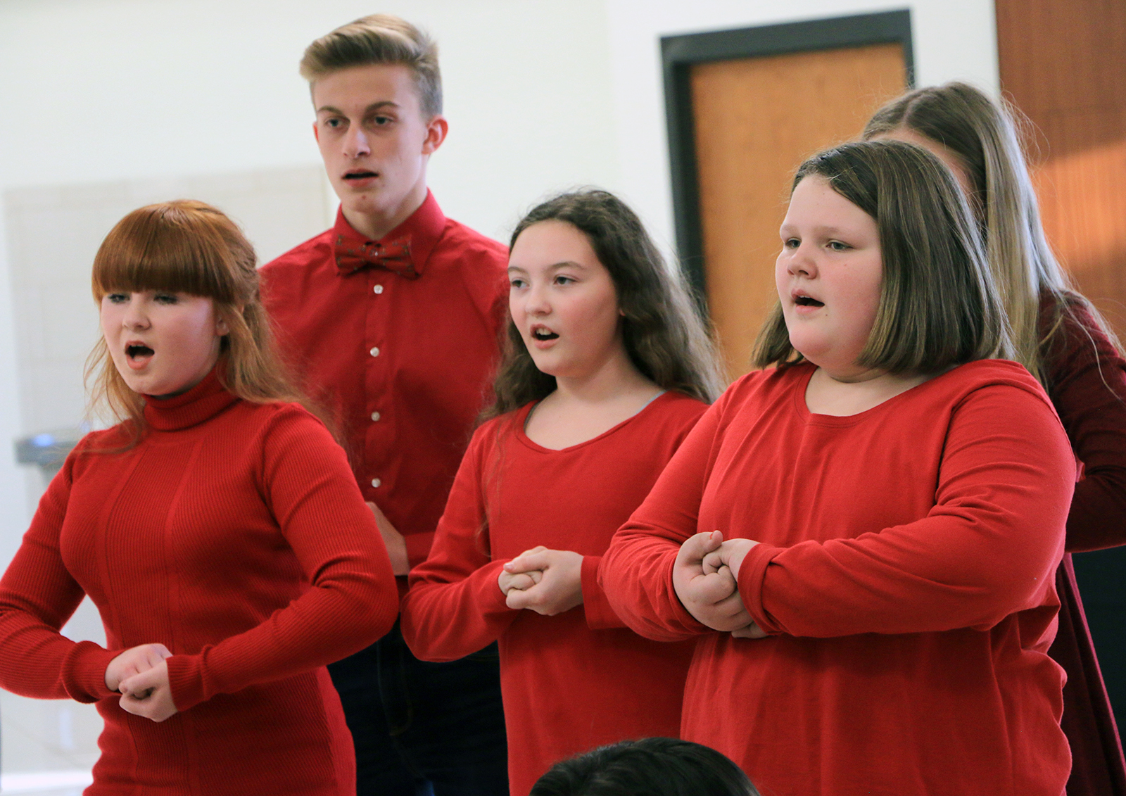 Area students participate in the SingKids! session of ArtsKids! at Wallace State sing during the Christmas Tree Lighting ceremony in December 2017.