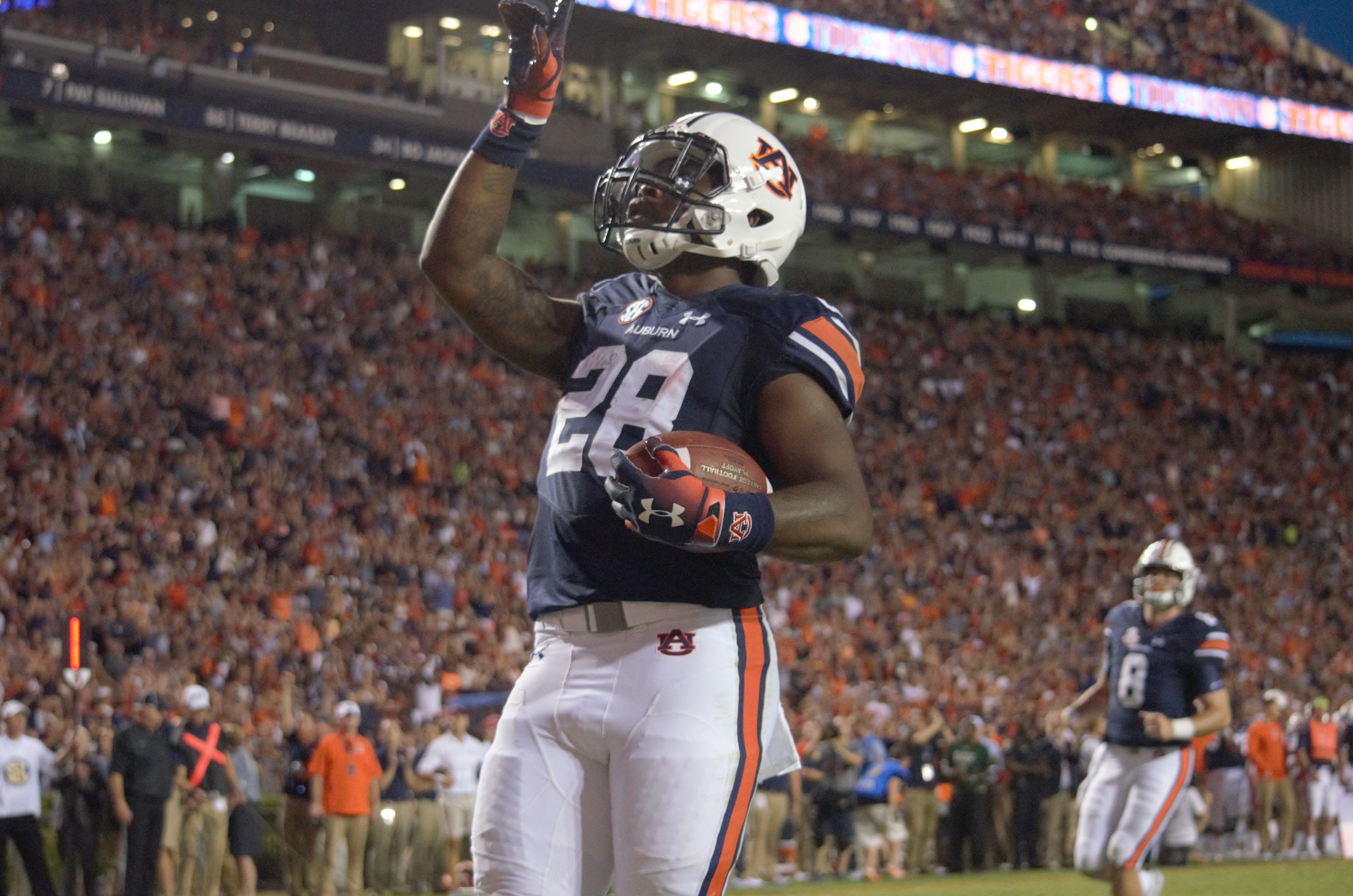 JaTarvious "Boobie" Whitlow scores the first touchdown of the night in Auburn's 34-3 win over Arkansas. (Nick Griffin for The Cullman Tribune)