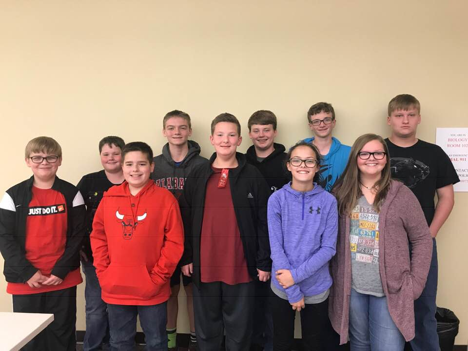 West Point Middle School Scholars (L-R): Aaiden Jones, John-Davis Yovino, Brodie Henry, Eli Taylor, Silas Baty, Judd Douglas, Katie Beth Yovino, Zeke Cornett, Abigail Roy, Kaleb Perry (Photo courtesy Lee Henry)