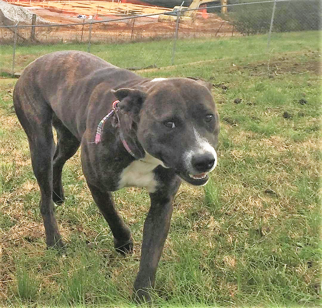 Lucille is a bull mix who’s a little over a year old.  She’s a laid-back and submissive low- to medium-energy pet.  She’s people-orientated and cherishes human companionship. Shelter staffers feel that she could have a future as a companion, comfort, hiking or therapy dog.