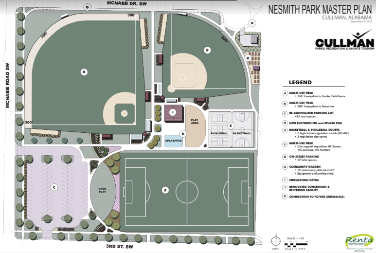 CULLMAN – In recent years, Cullman Parks, Recreation, and Sports Tourism (CP&R) has undertaken the renovation of four city parks: Ingle, Carrol Acres, Stiefelmeyer and Culpepper. Next, the department hopes to add Nesmith Park to that list. Seeking funding from the federal government’s Land and Water Conservation Fund (LWCF) matching grant program, CP&R hopes to perform a major operation on the west side park that will go far beyond sprucing up, to the creation of what will be in many ways a whole new recreation and sports facility.