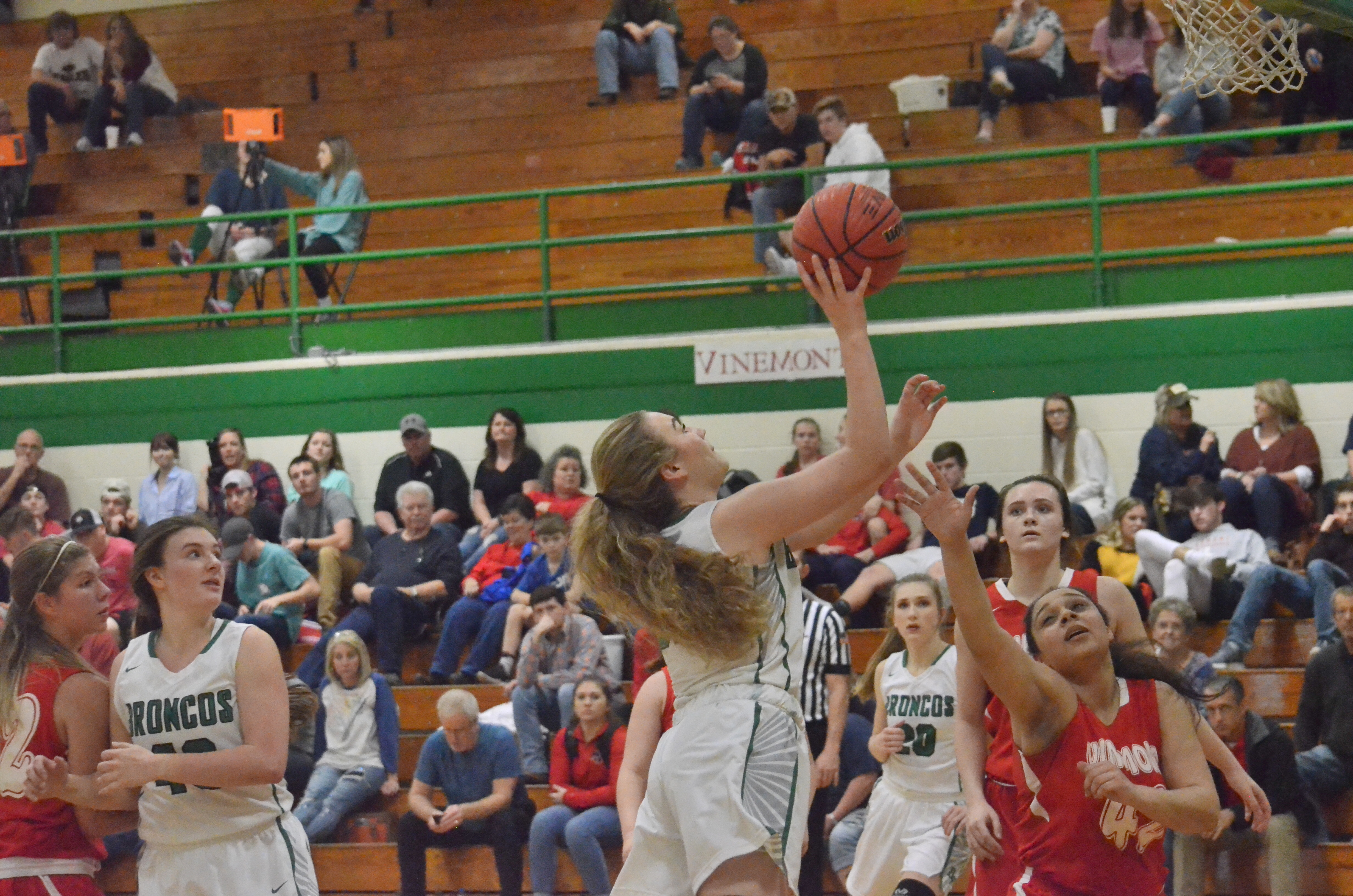 Both sides struggled with turnovers early in this one, making points hard to come by, but a 3-pointer from Maddi Ham in the final seconds of the first quarter gave the Lady Broncos a 7-4 lead going into the second.