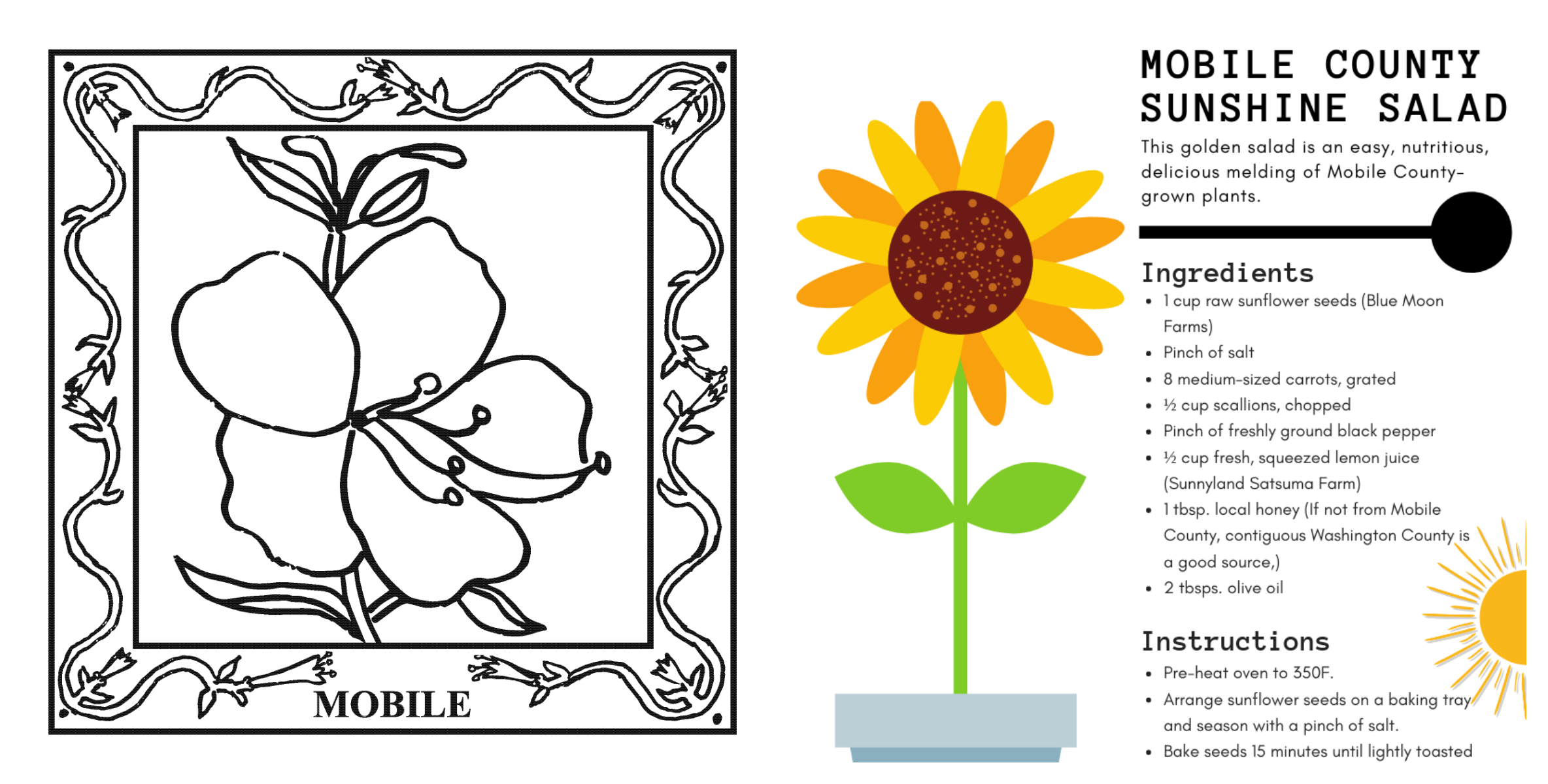 I asked some other pleasure-seeking Mobilians for their suggestions on how to celebrate PLANTS + PEOPLE in their county. Here are their passionate replies and a shared recipe for Mobile County Sunshine Salad: