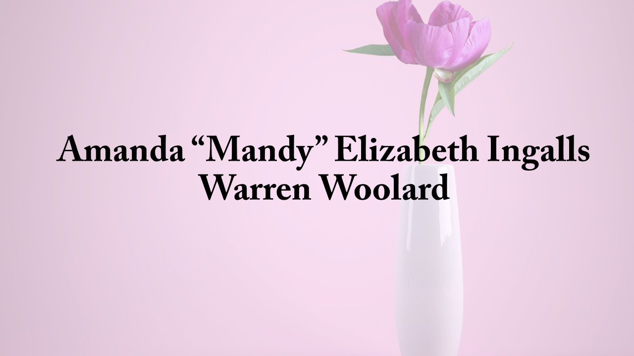Amanda “Mandy” Elizabeth Ingalls Warren Woolard lived a vibrant life for 89 years. She went to be with our Heavenly Father on Feb. 18, 2019. She enjoyed telling others about Jesus and how she loved him with all of her heart. Amanda spent her time helping others who were in need. She did this with a smile and a joke or two. She loved people and was loved back for her being the caring person she was. During her life she suffered through trials of tragedy and loss, but through those times she leaned on the Lord for strength and courage. Amanda left this world a better place to live because she left many footprints and many memories for those who knew her and loved her dearly.