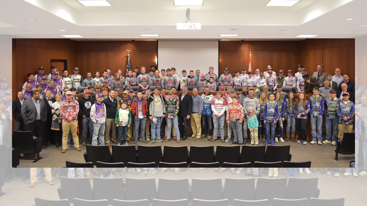 On hand to celebrate were Cullman’s City Council, Mayors Woody Jacobs of Cullman and Jerry Bartlett of Good Hope, Senator Garlan Gudger, R-Cullman, Cullman Parks, Recreation and Sports Tourism Executive Director Nathan Anderson, Cullman County Parks and Recreation Director Doug Davenport, Cullman County Commissioner Kerry Watson, Cullman County Schools Superintendent Dr. Shane Barnette and student anglers from school fishing teams across the county.