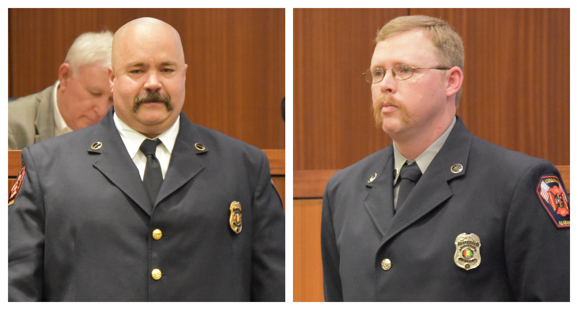 Engineer Neville Franks, left, was named the Firefighter of the Year for 2018. Firefighter Joel Sims was named Emergency Medical Technician (EMT) of the Year for 2018. (Maggie Darnell for The Cullman Tribune)