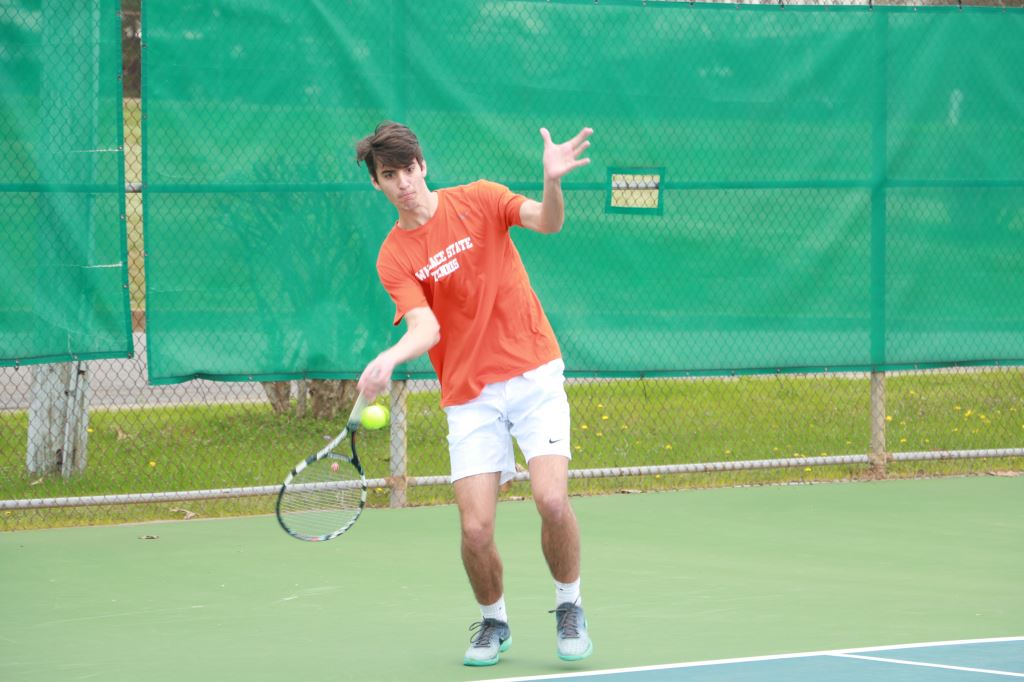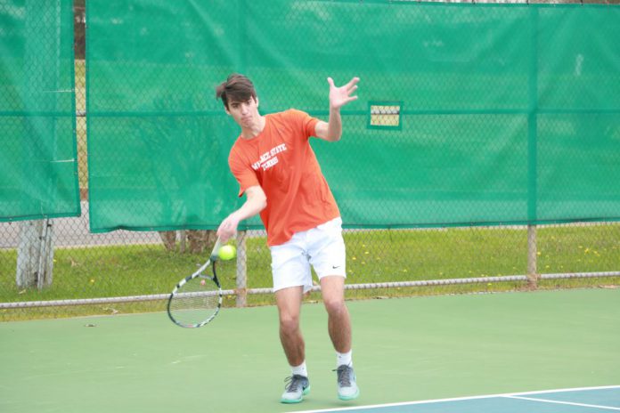 Sebastian Arce (6-2, 6-0), Nick Hester (6-1, 6-0), Andrew Bizilia (6-0, 6-0), Zach Mastin (6-0, 6-1) and Will Brackin (6-0, 6-0) each notched singles victories for the men’s team. Wallace State had doubles victories from the duos of Arce and Brackin, Hester and Bizilia and Mastin and Ben Hicks.